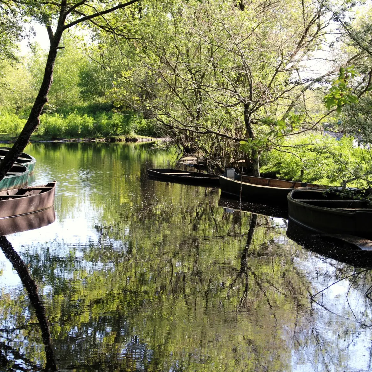 4 tables à l'extérieur et 6 tables sous abris, capacité totale : 60.Parking : Il y a un 1er parking en arrivant au port ( autocars et voitures), puis possibilité de stationner près des aires de pique-nique.Sanitaires , point d'eau, poubelles.Environnement : Départs pour promenades en barques et calèches. Accessible aux fauteuil roulants. Auberge et crêperie sur place. Départ de circuits de randonnées. Exposition de sculpture artisanale sur morta (bois fossilisé) à proximité.