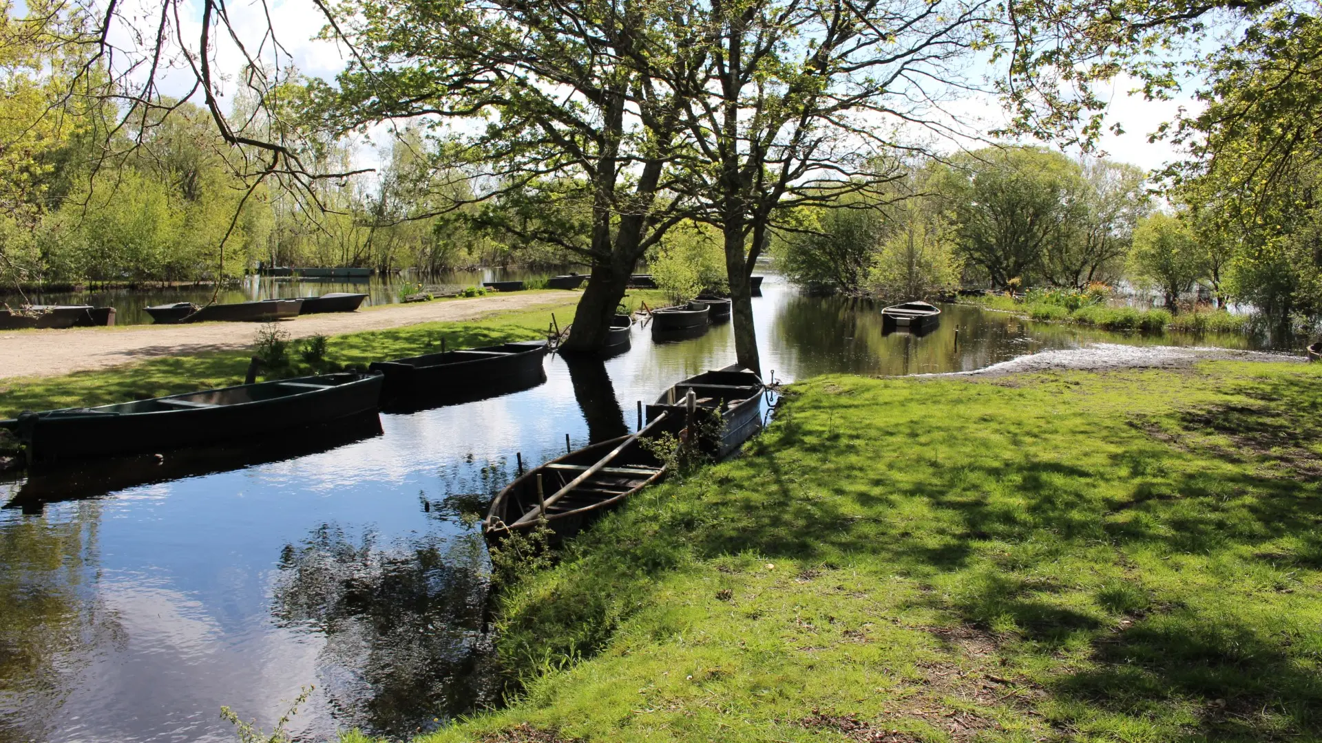 5 tables, capacité totale : 30.Parking : Il y a un 1er parking signalé à 200 m de l'aire de pique-nique (autocars et voitures), puis possibilité de stationner près des aires de pique-nique.Sanitaires , point d'eau, poubelles.Environnement : zone ombragée, départs pour promenades en barques et calèches. Accessible aux fauteuils roulants. Départ de circuits de randonnées à proximité.