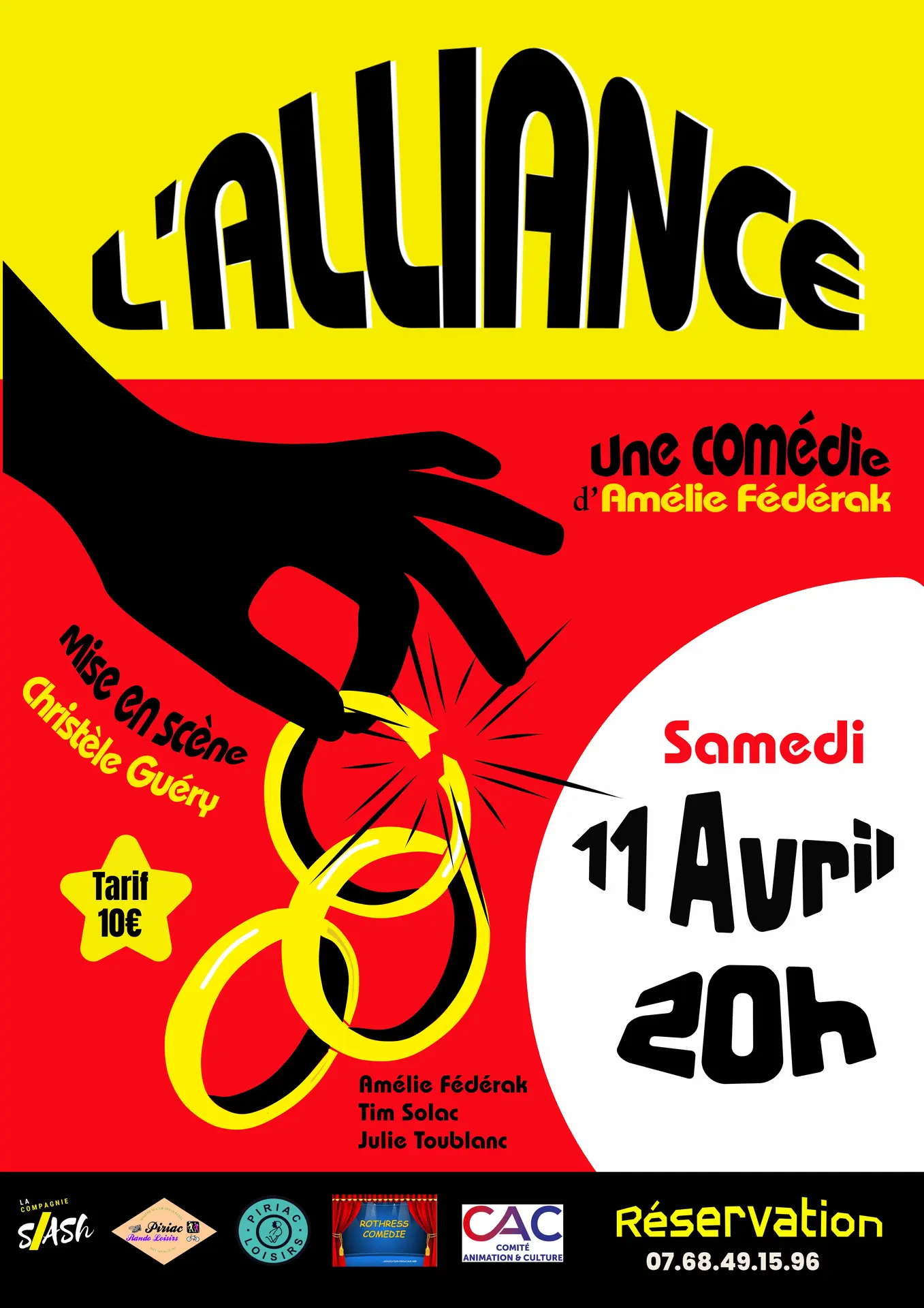 «L’Alliance» avec Tim Solac, Julie Toublanc et Amélie Fédérak. Proposé par Piriac Loisirs, le CAC, Piriac Rando et Rothress Comédie.