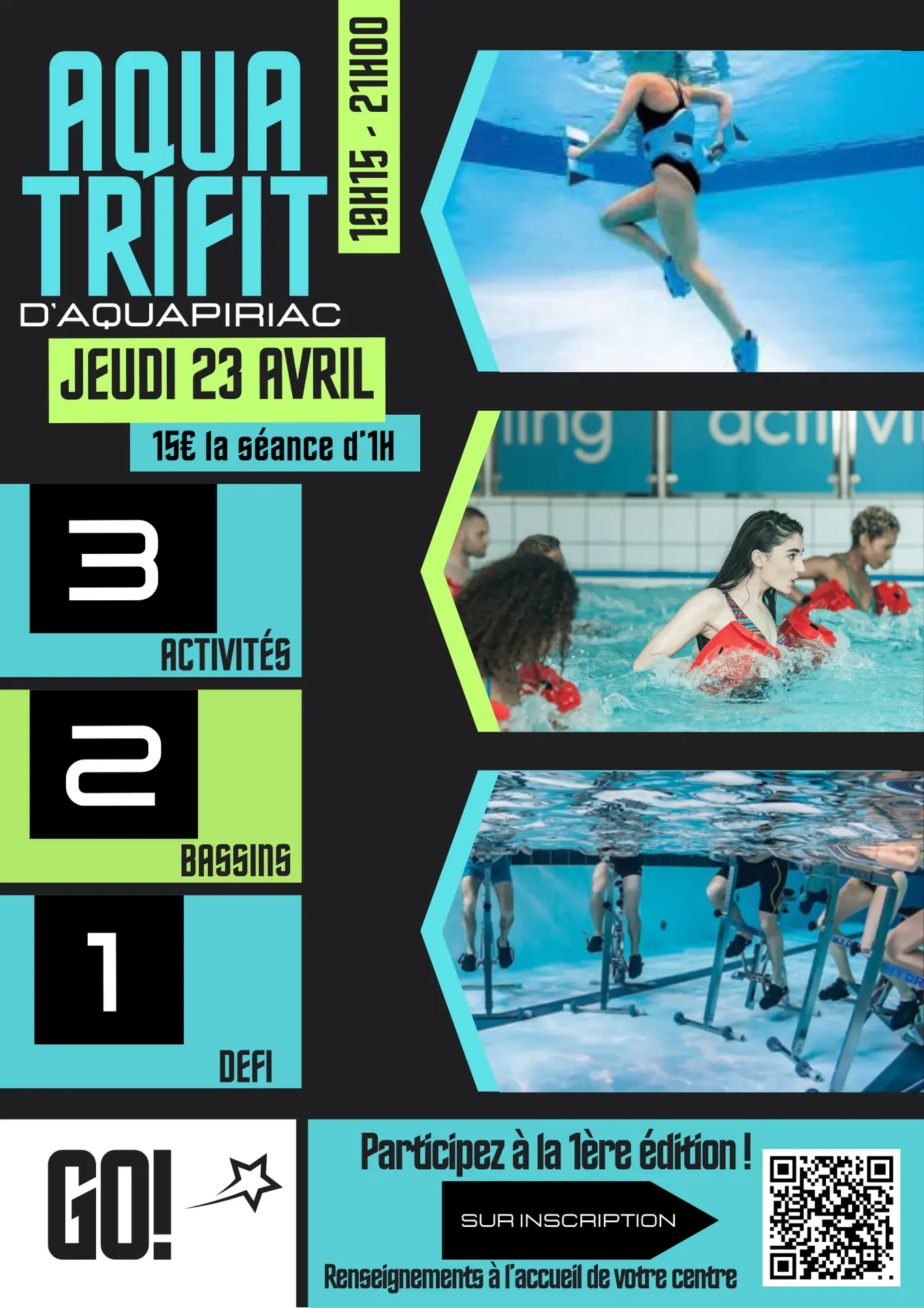 Participez à la 1ère édition d'Aqua TriFit à AquaPiriac !3 activités, 2 bassins, 1 défi !