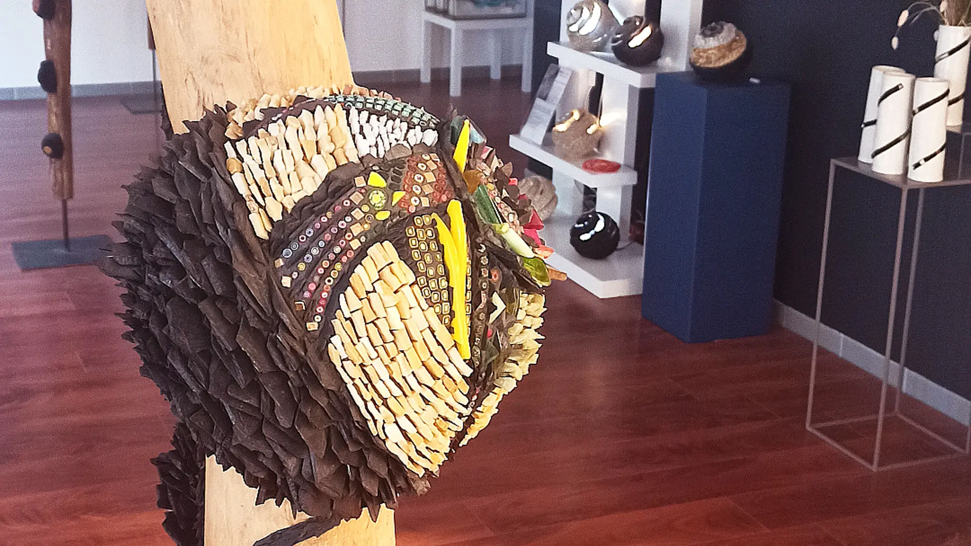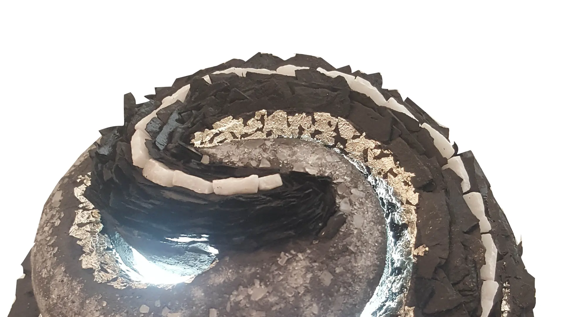 Pièces uniques en bois, ardoise, marbre, porcelaine, pierres semi-précieuses, feuille d’or…