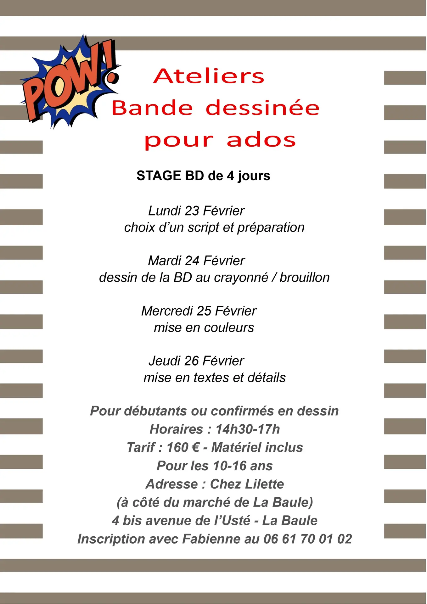 Ce stage de 4 jours est l’occasion rêvée pour les plonger dans l’univers passionnant de la bande dessinée.