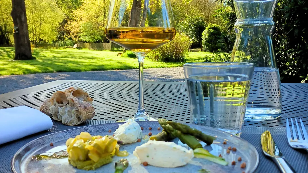 Une bulle de modernité dans un écrin de verdure... Une cuisine « revisitée » aux saveurs du terroir (épices, cuisson à la plancha...). Le chef vous propose un voyage au gré des saisons. Laissez-vous tenter par une pause gourmande dans cette chaumière, au cœur de la Brière.