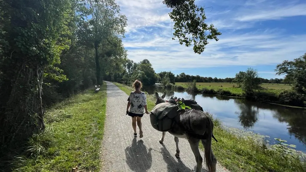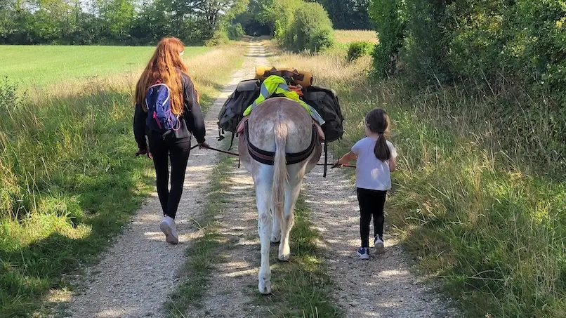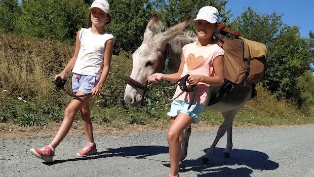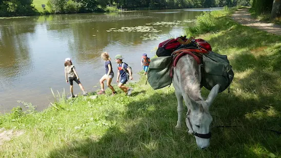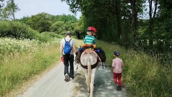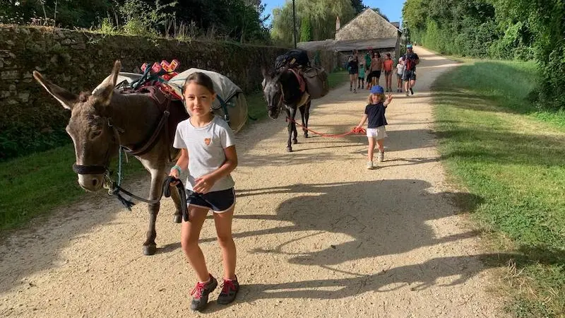 La randonnée : Notre activité de randonnée permet de s'échapper avec des ânes éduqués, en toute autonomie et en sécurité, pour quelques heures, une journée ou plusieurs jours. L'âne au cœur de l'aventure se charge de porter vos bagages (goûter, pique-nique, affaires...) et accueille sur son dos les petites jambes fatiguées.