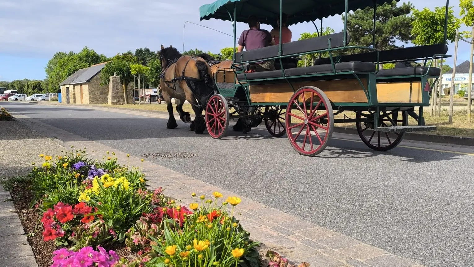 Balade commentée d'une heure au rythme des chevaux de trait.