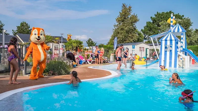 Complexe aquatique : un bassin couvert ludique et un bassin extérieur avec aquaplay, 5 toboggans et rivières. Un pôle activité avec tennis, terrain multisports et trampôforest, structure gonflable et trampoline, animations & mini club (en juillet & août)...