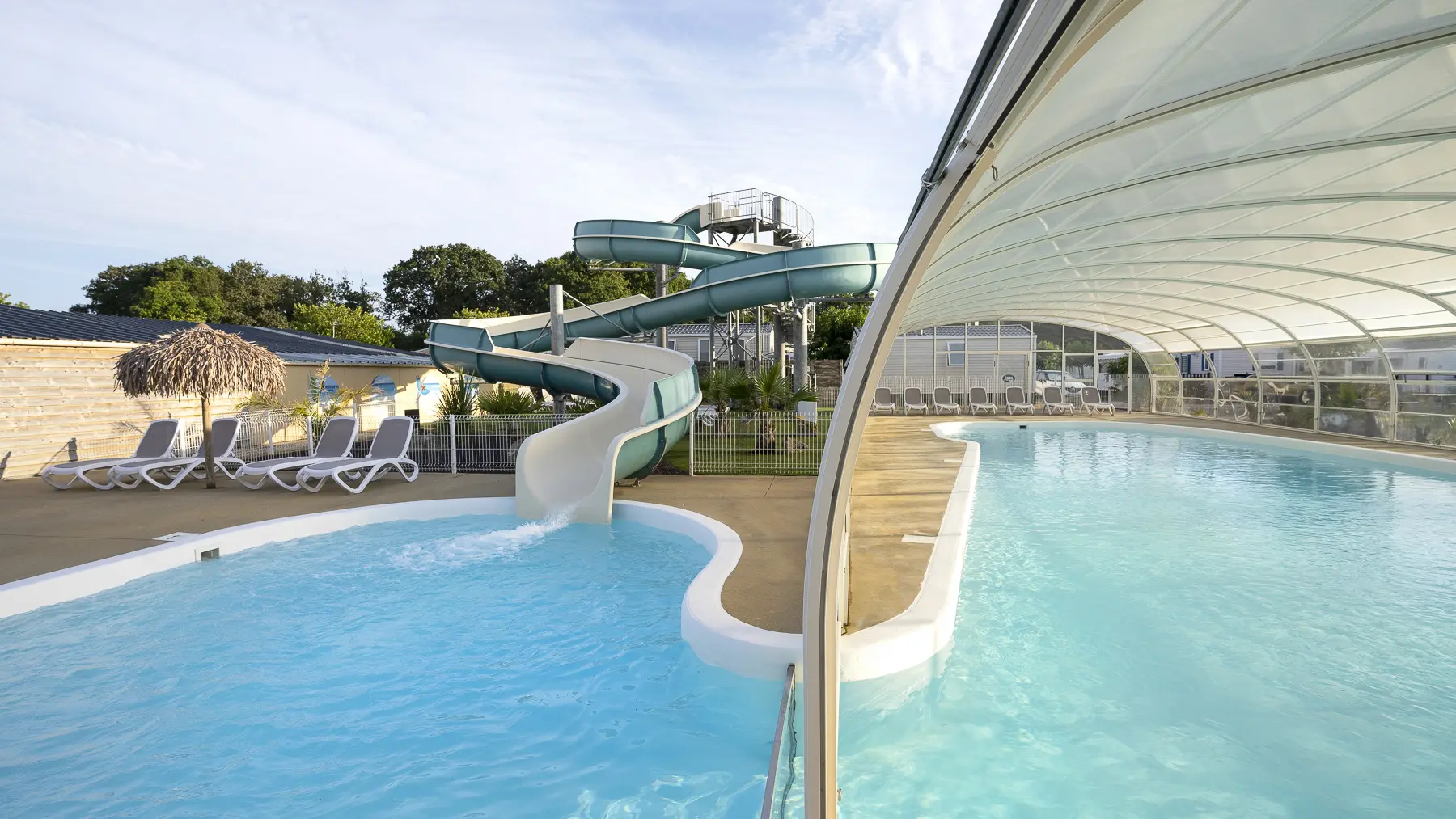 Des locations de qualité sur de grands emplacements arborés et verdoyants, posez vos valises et profitez. Un complexe aquatique avec toboggan fera votre bonheur dès le mois d'avril, et en été ce sont deux piscines couvertes avec cascade et plage pour les plus petits.