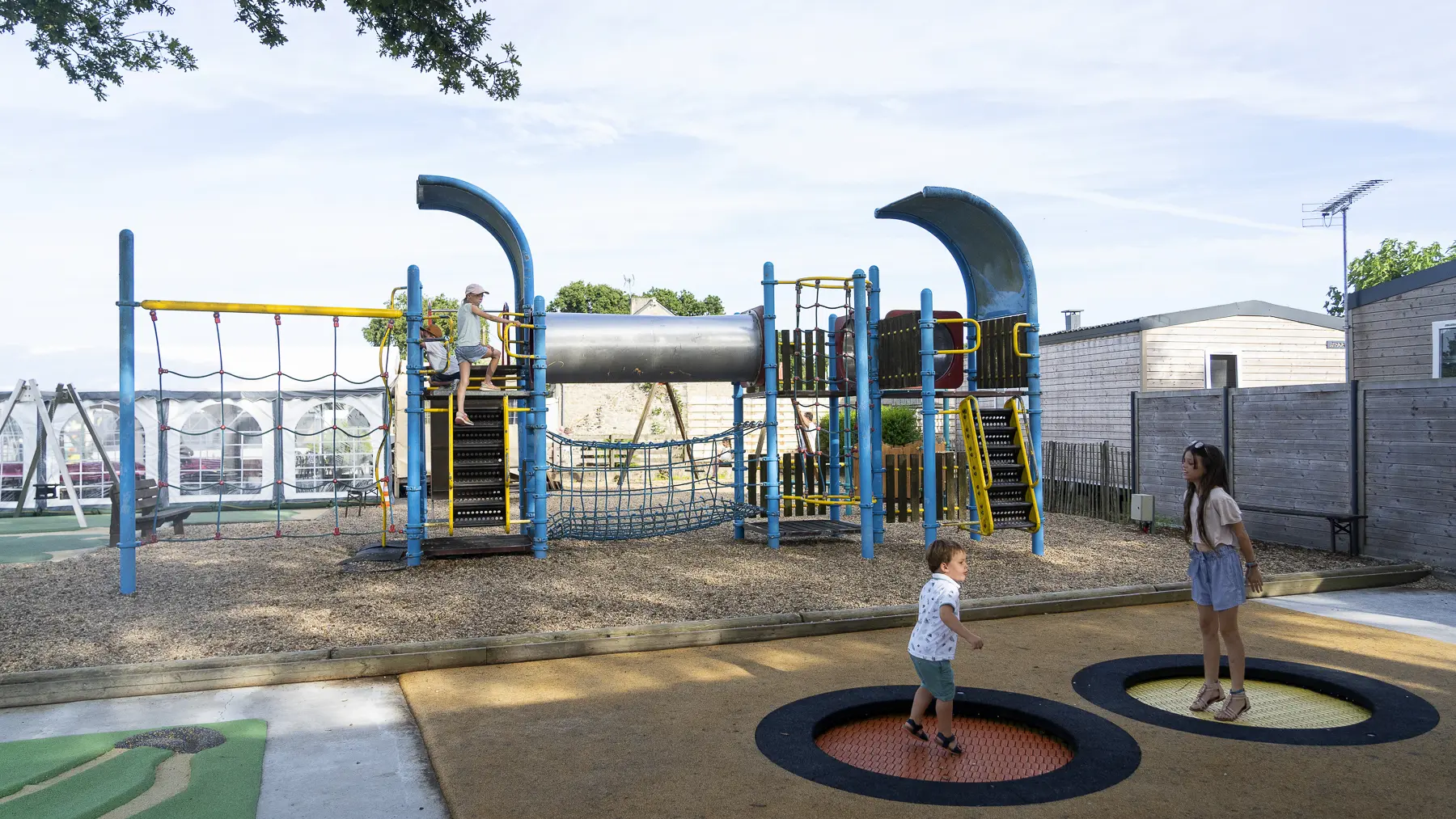 Retrouvez tout le confort d'un camping 4*, avec une multitude d'activités : trampoline, terrain multisports, bar, food truck et club-enfant (en été).