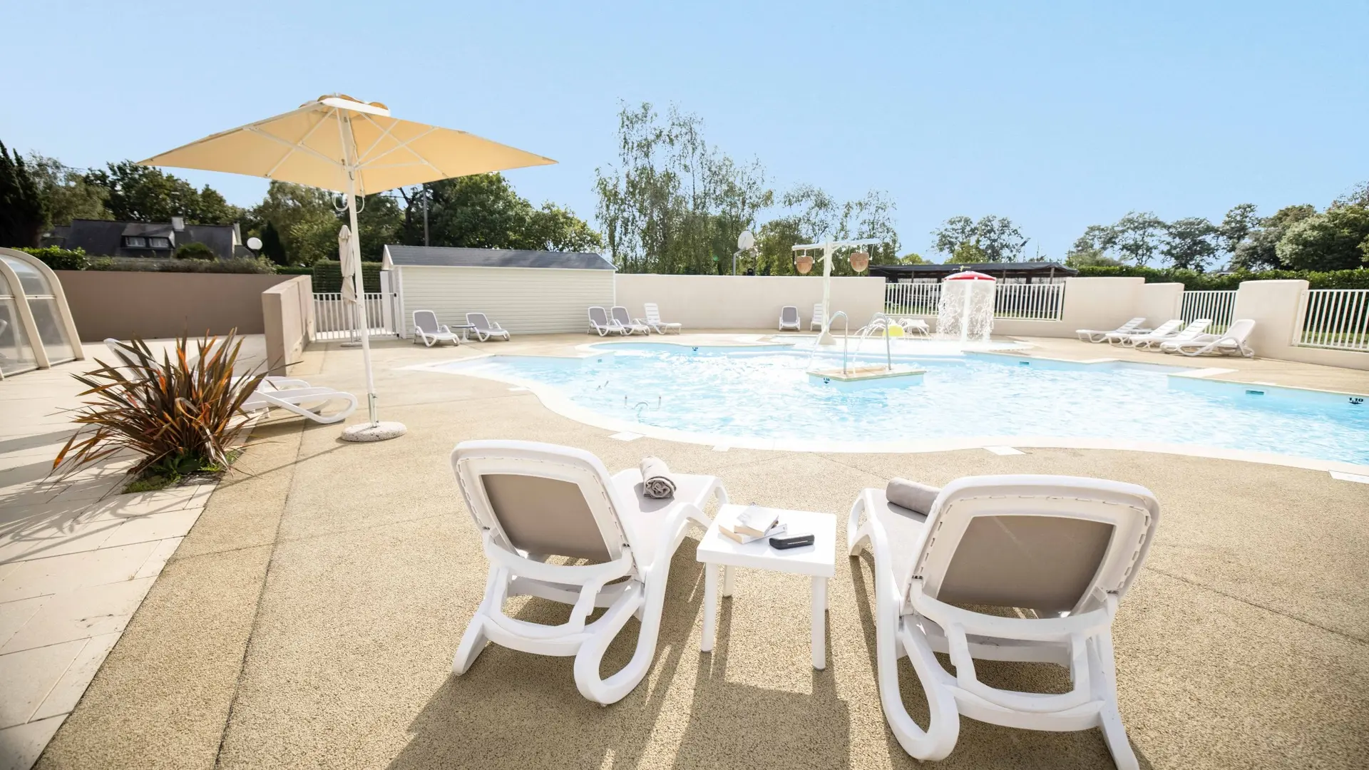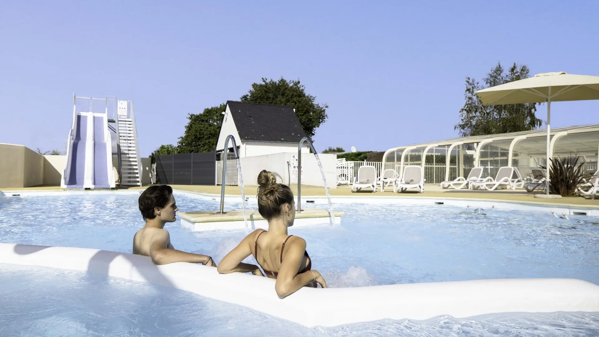 L'espace aquatique chauffé comprend une piscine couverte avec une pataugeoire, et un second bassin de 120 m² extérieur comprenant 2 pentagliss, une balnéo, une rivière contre-marche, 2 aquabikes, une pataugeoire avec trois jeux aqualudiques.