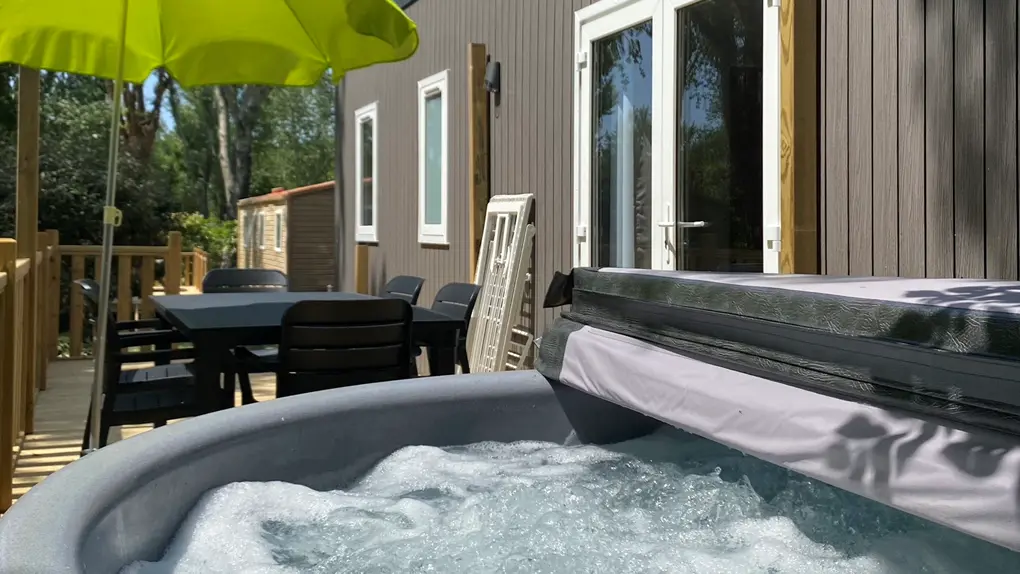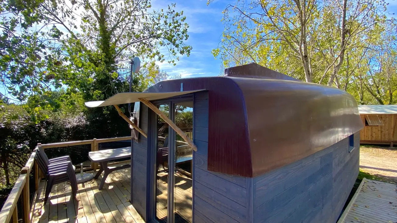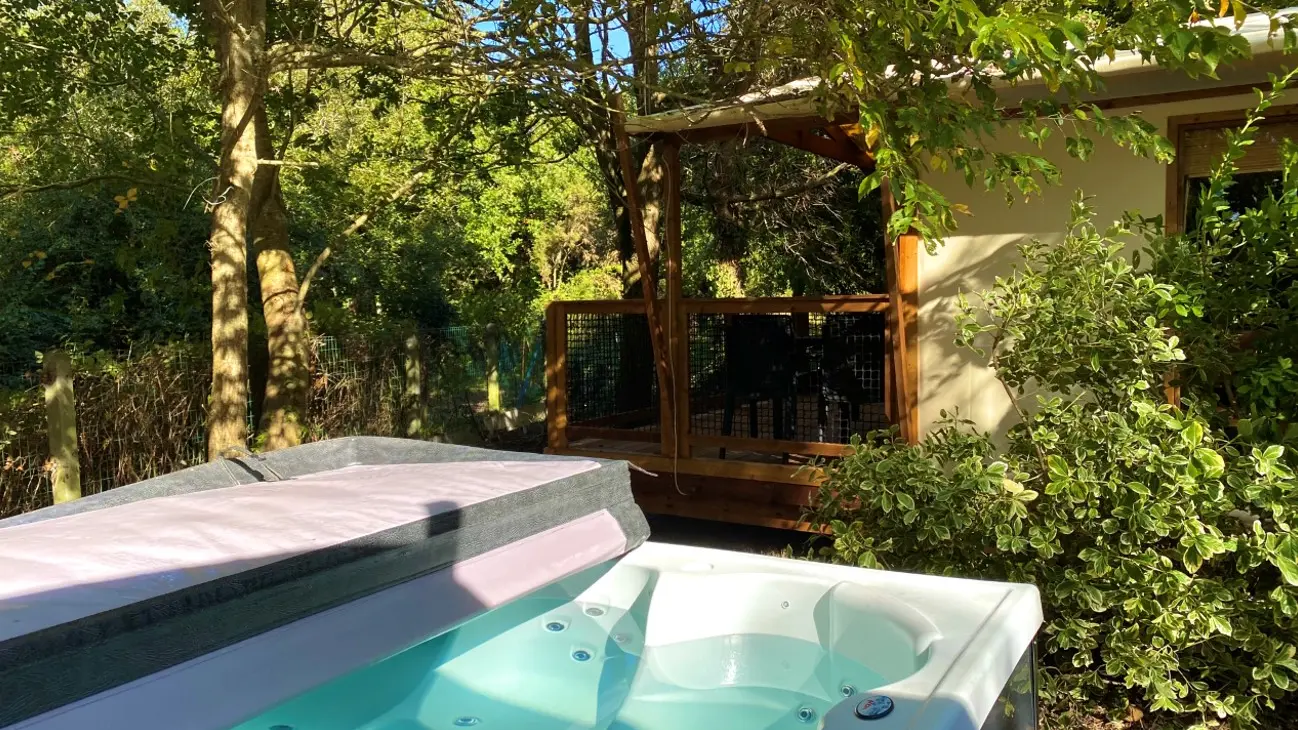 Nous allions respect de la nature et confort. Mobil-homes avec piscines privatives, mobil-homes et tentes aménagées avec jacuzzis, emplacements de camping avec sanitaires individuels et cabanes étape.
