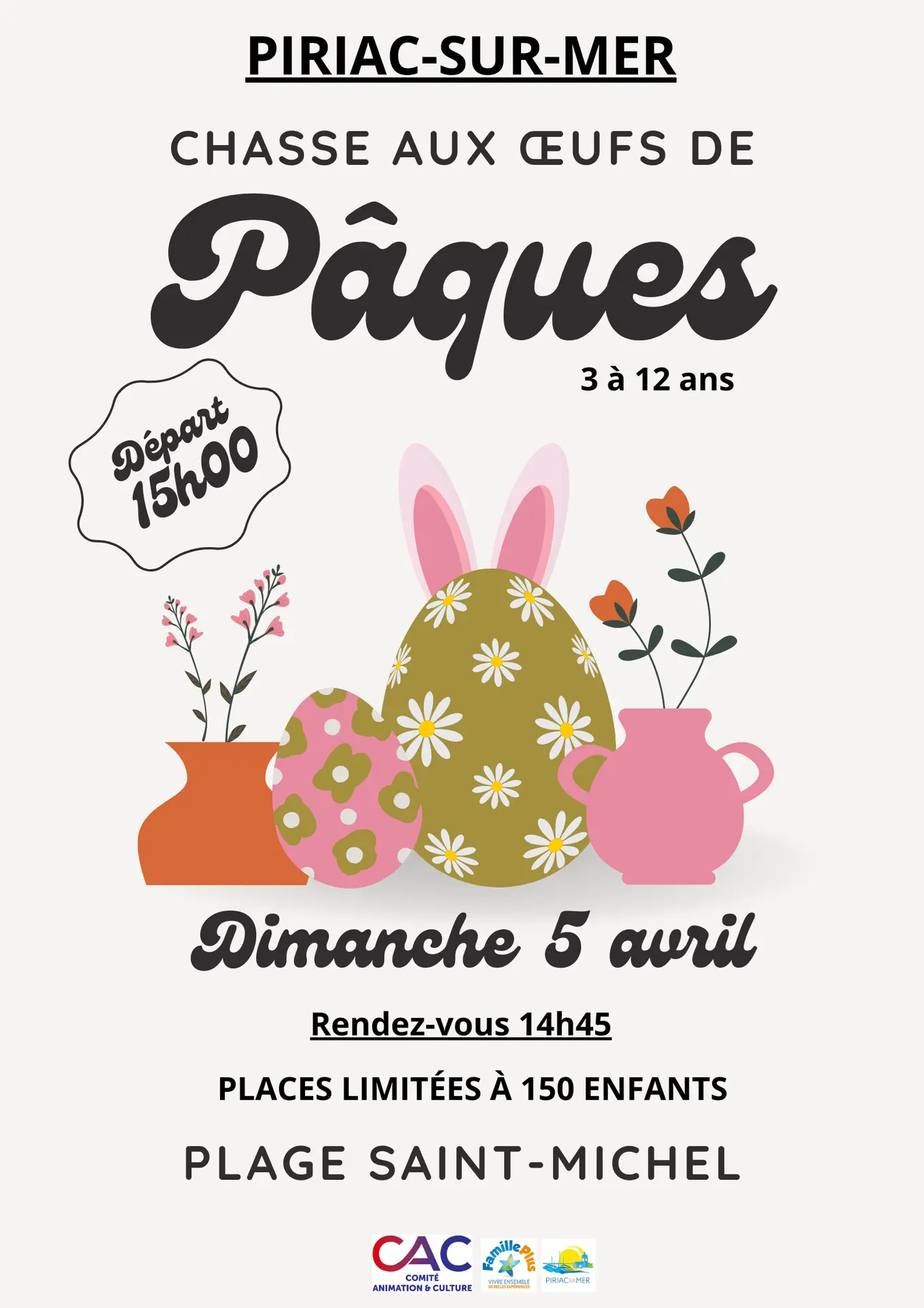 Les enfants de 3 à 12 ans doivent trouver des œufs de différentes couleurs, cachés dans le sable, pour les échanger contre du chocolat.