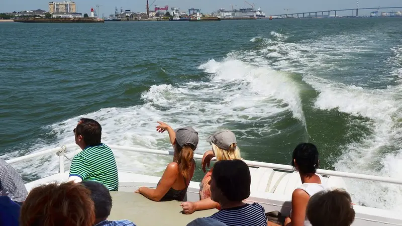 - "Saint-Nazaire sur Mer" vous dévoile l'ensemble de la ville vue de l'eau. Elle y devient un vrai spectacle. Passage sous le pont, découverte des installations portuaires, navigation dans le chenal maritime, front de mer et falaises, tout s'enchaîne pour un moment inoubliable.