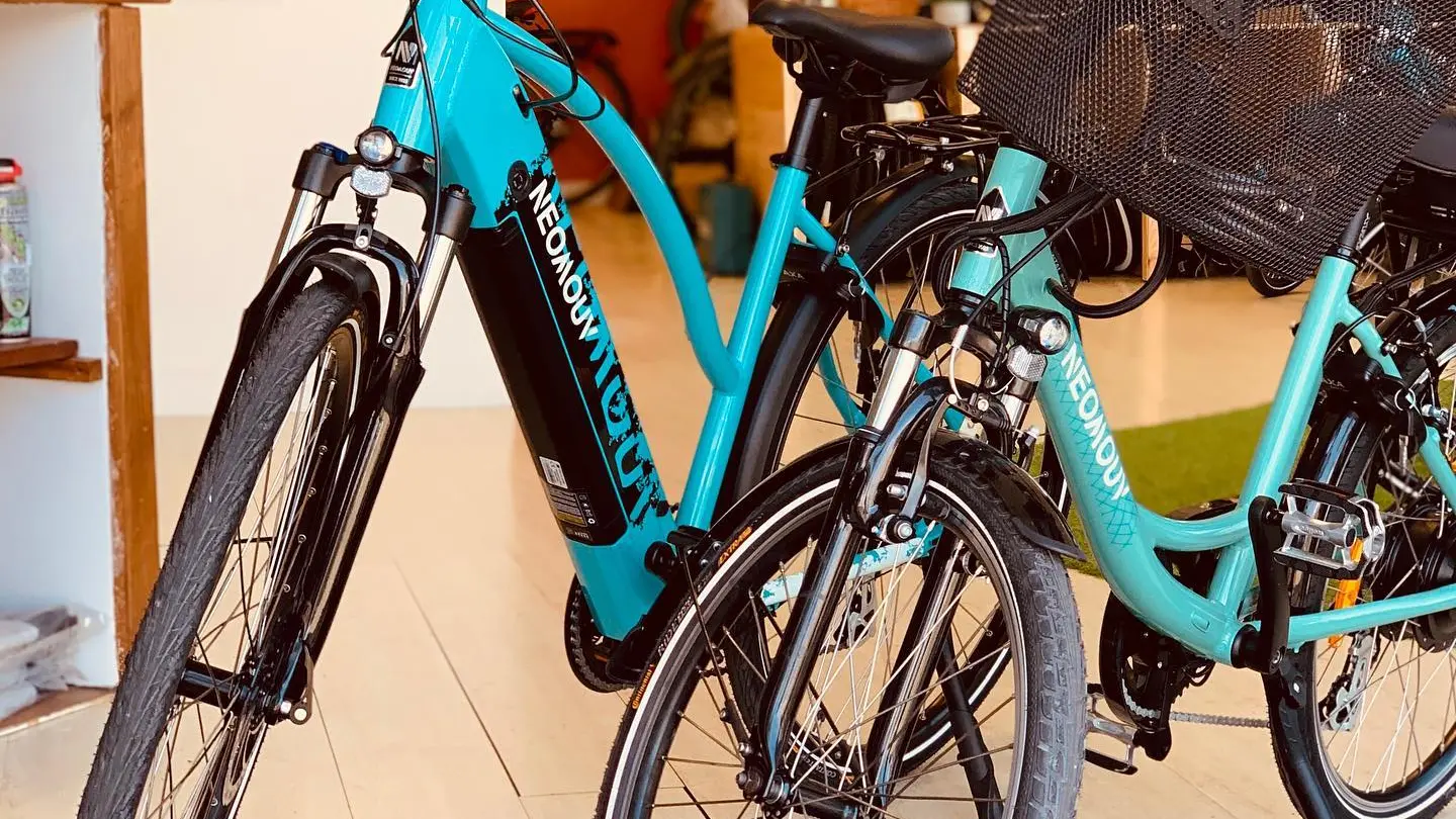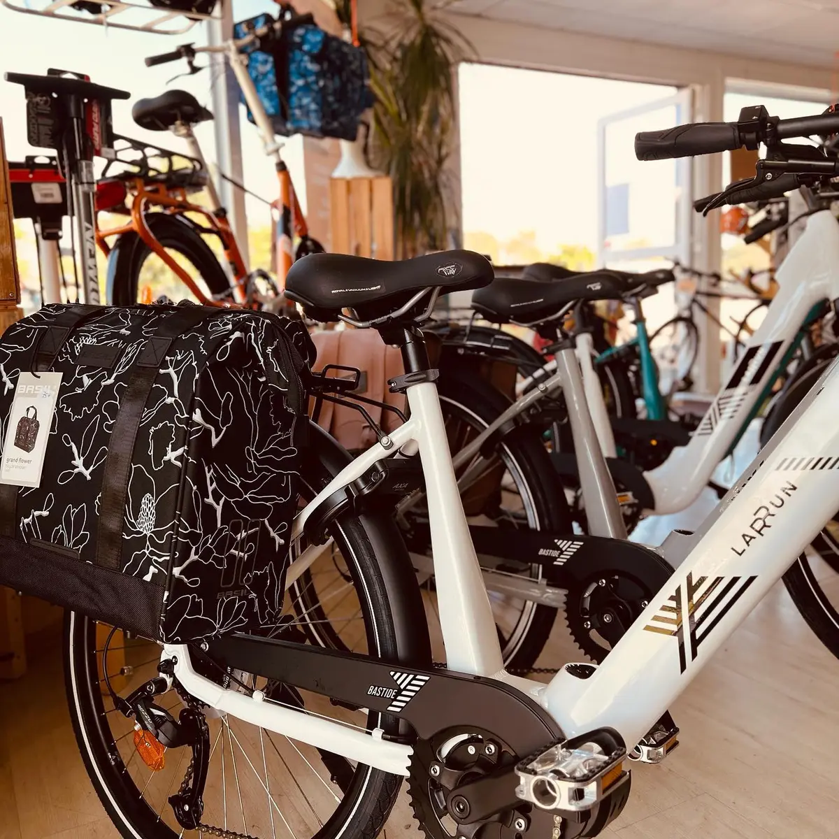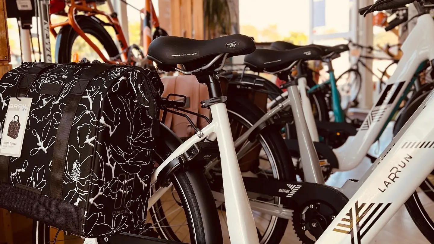 Vélos électriques ou classiques adultes et enfants, équipement famille: remorque, siège bébé. Casques et cadenas prêtés.