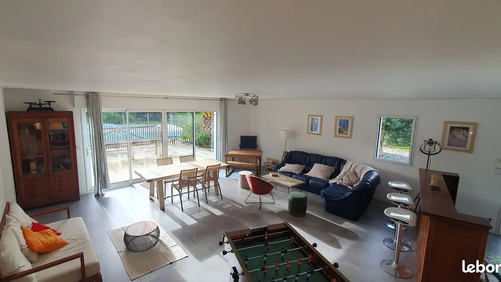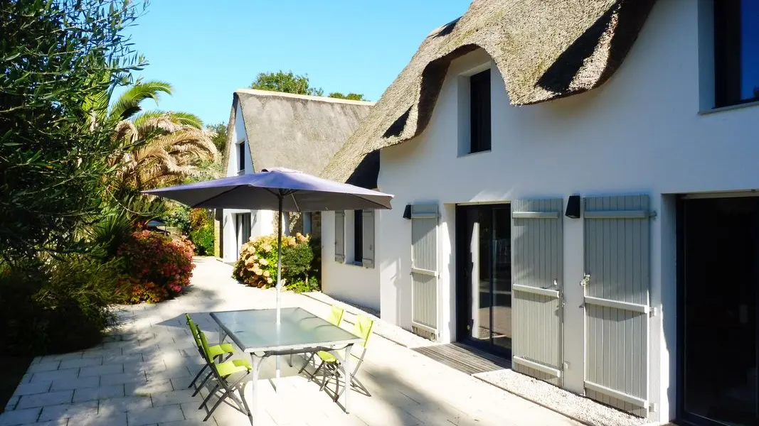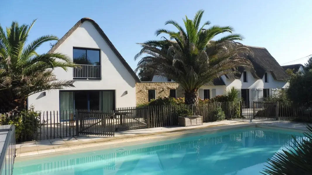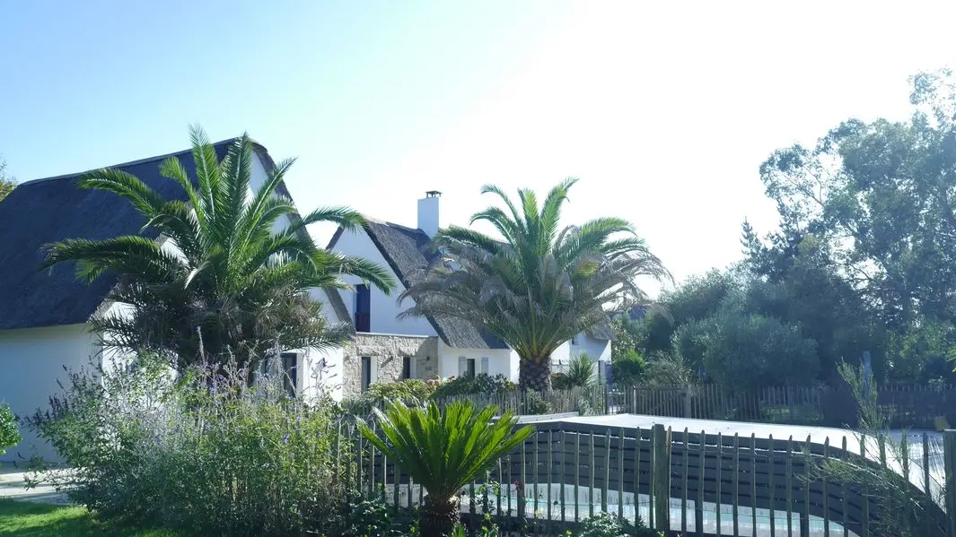 Maison contemporaine avec toit en chaume sur un parc clos et arboré de 6000 m2 avec piscine chauffée (1er mai au 30 sept). Chaque pièce a été soigneusement aménagée et décorée pour rendre votre séjour agréable et apaisant, le tout dans un extérieur luxuriant et verdoyant.