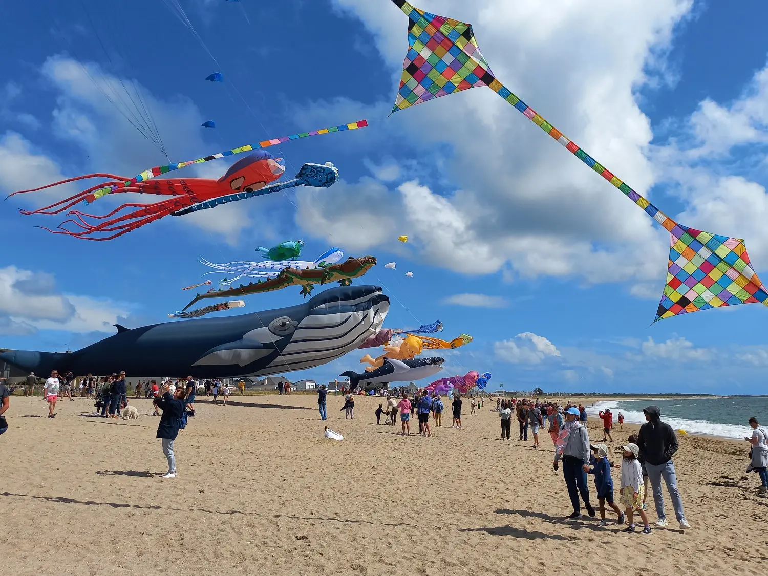 Animations autour des cerfs-volants avec la participation de cervoliste internationaux, animations de rue, slackline, stands et concert sur la plage le samedi soir.