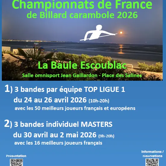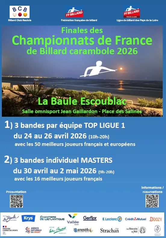 - 3 bandes individuel MASTERS avec les 16 meilleurs joueurs français