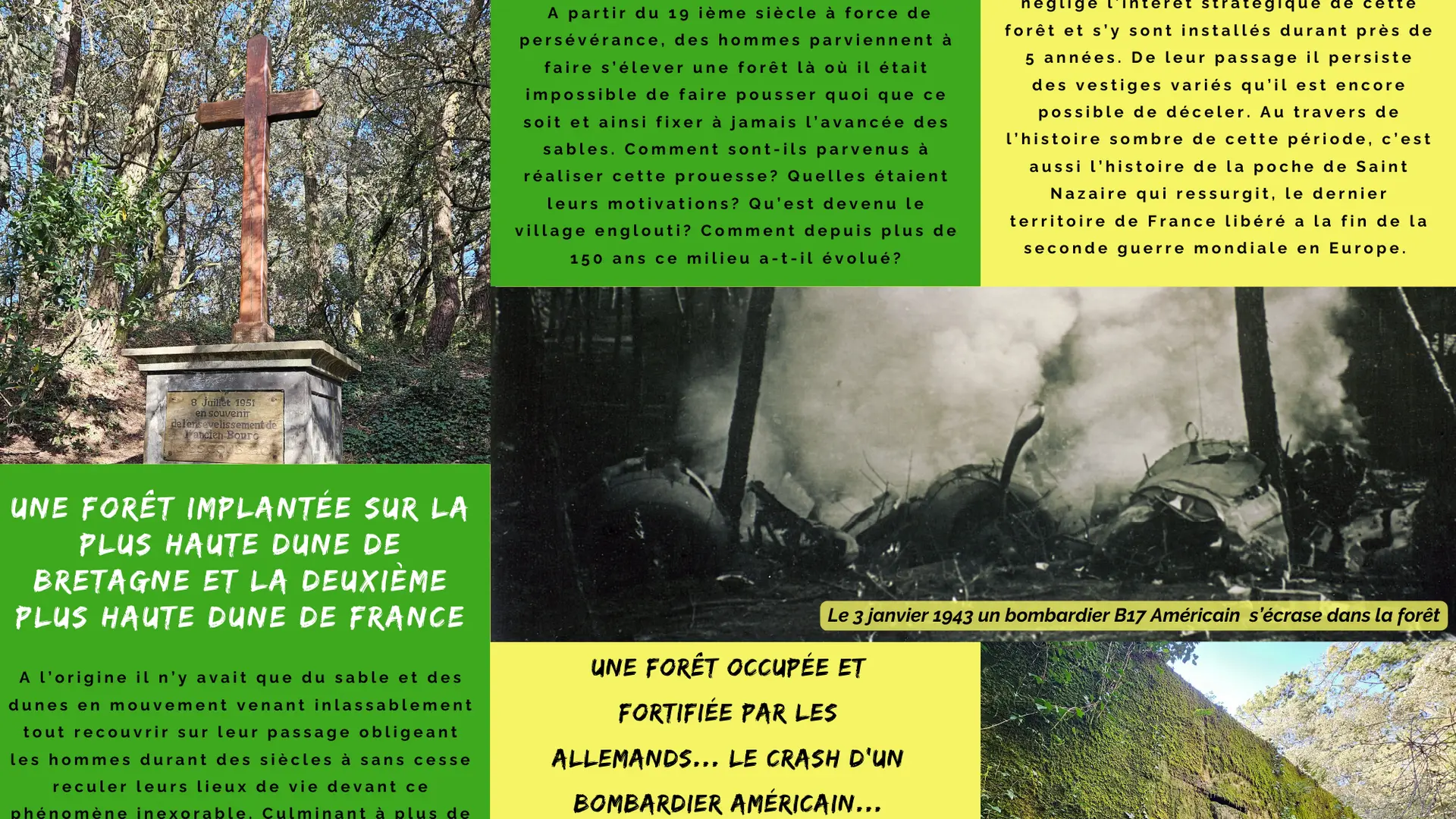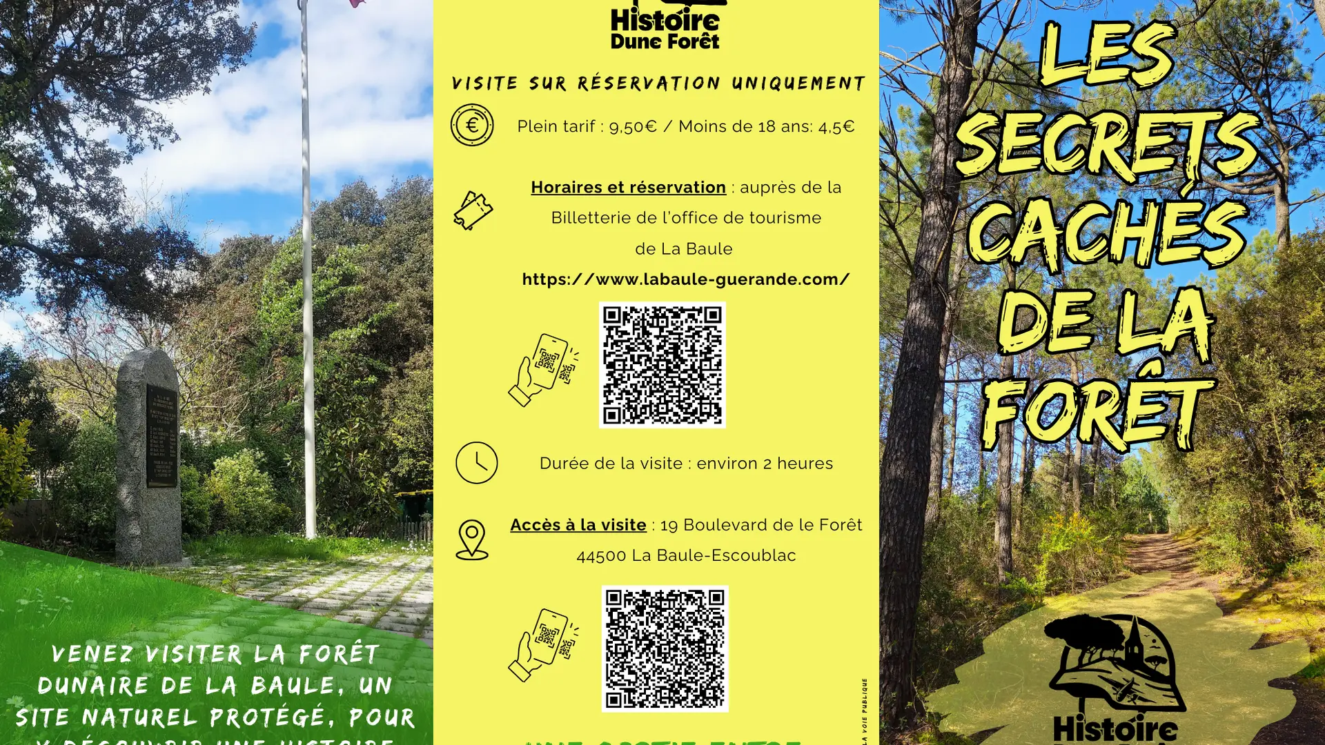 Visite guidée pédestre d'une forêt dunaire (forêt de La Baule Escoublac), sur le thème de la formation et l'histoire de cette forêt depuis le 19e siècle jusqu'à nos jours, mais également sur l'occupation allemande de 1940 à 1945, avec la présentation des vestiges de cette occupation.