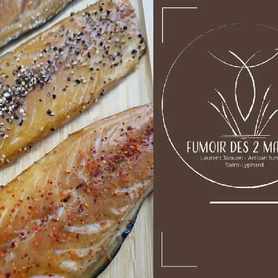 Vente directe de poissons fumés artisanaux au bois de hêtre et sel de guérande, finement tranché.