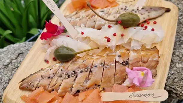 Fumoir Artisanal de poissons. Mise en valeur des produits de la Mer, pêche durable et locale. Tranché à la main.