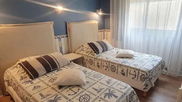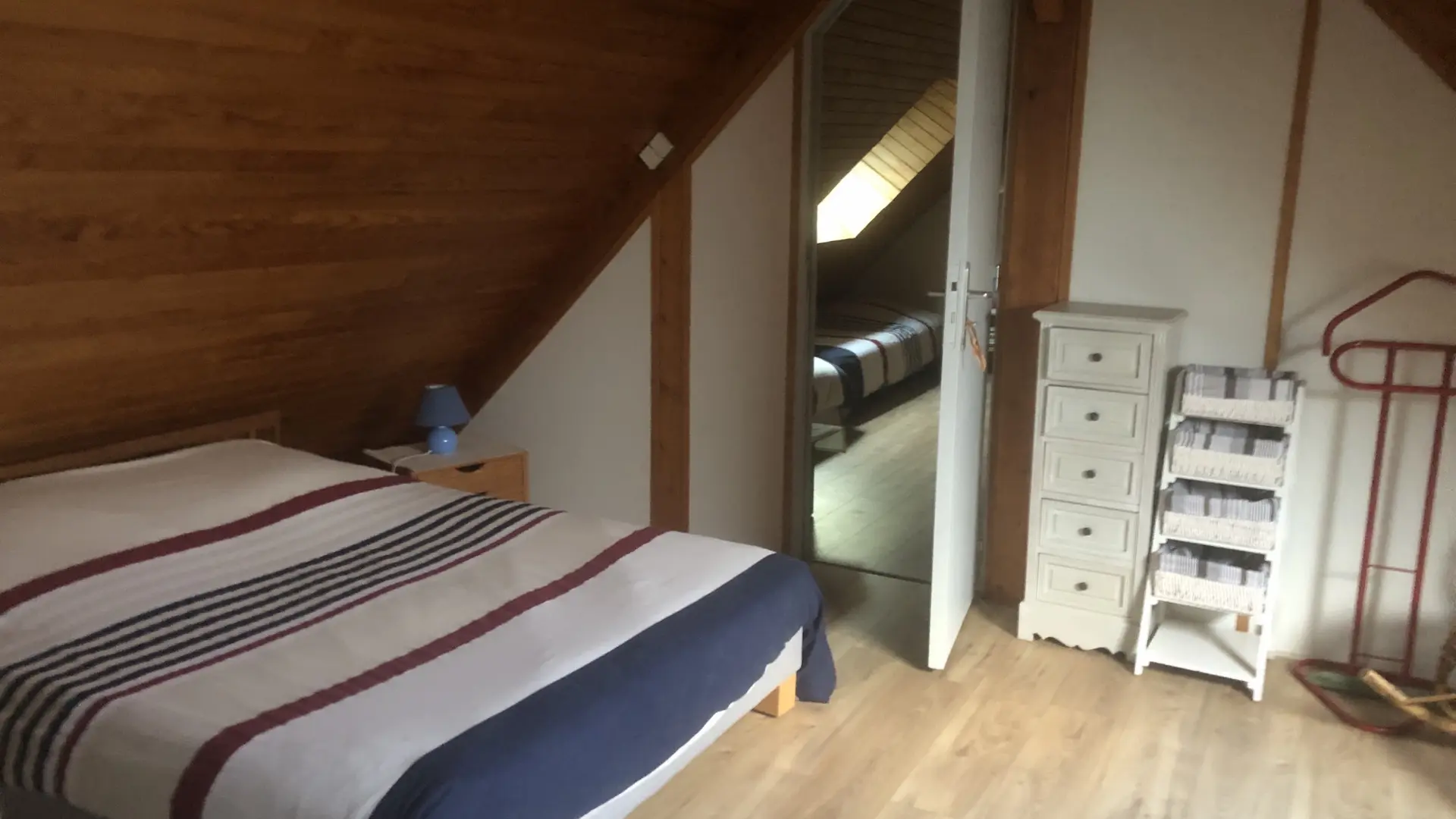 Appartement à l’étage avec une grande loggia ( table et transats ), escalier privatif .