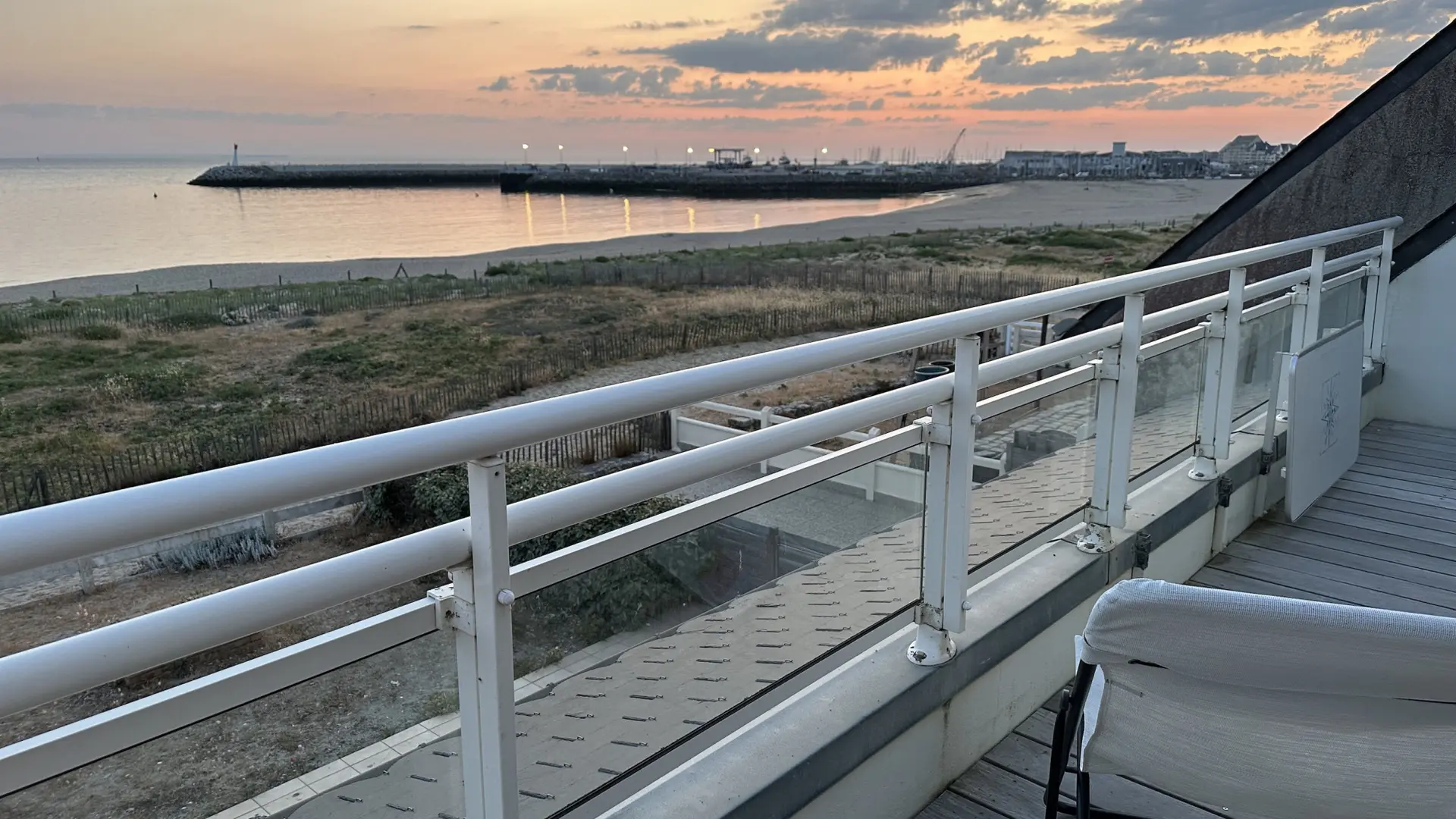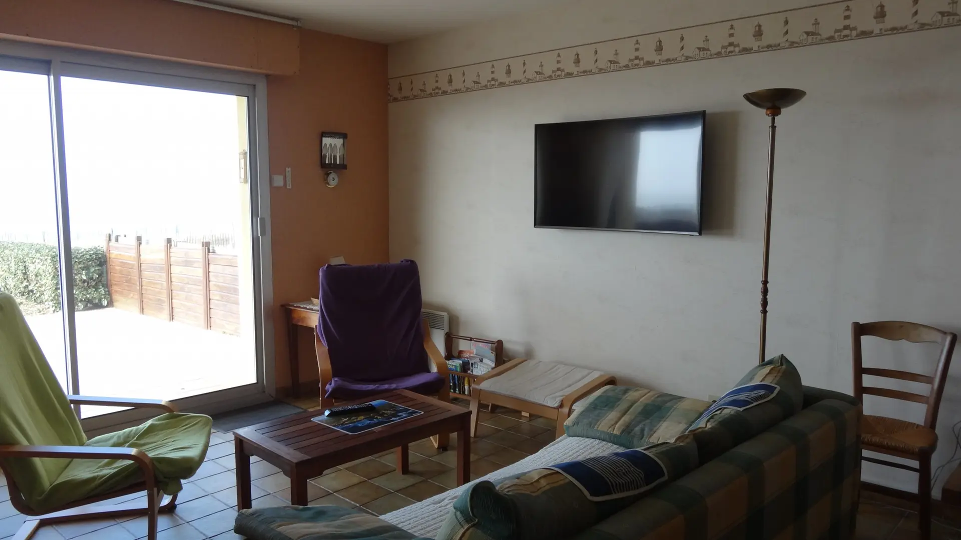 Appartement au rez de chaussée (accès par 6 marches côté rue) dans une maison située face à l'océan , avec grande terrasse privative orientée sud-ouest et donnant directement sur la plage.