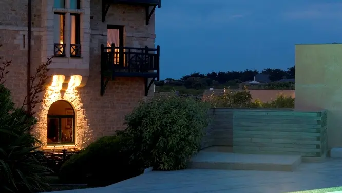 Grande demeure de granit breton, au milieu d'un jardin de gazon, d'hortensias, de lavandes et de pins maritimes, le Fort de l'Océan se dresse sur les rochers, bercé par le rythme des marées. Hôtel de charme et lieu idéal pour un week-end de dépaysement total et de ressourcement, dans une ambiance très chaleureuse et un service parfait.