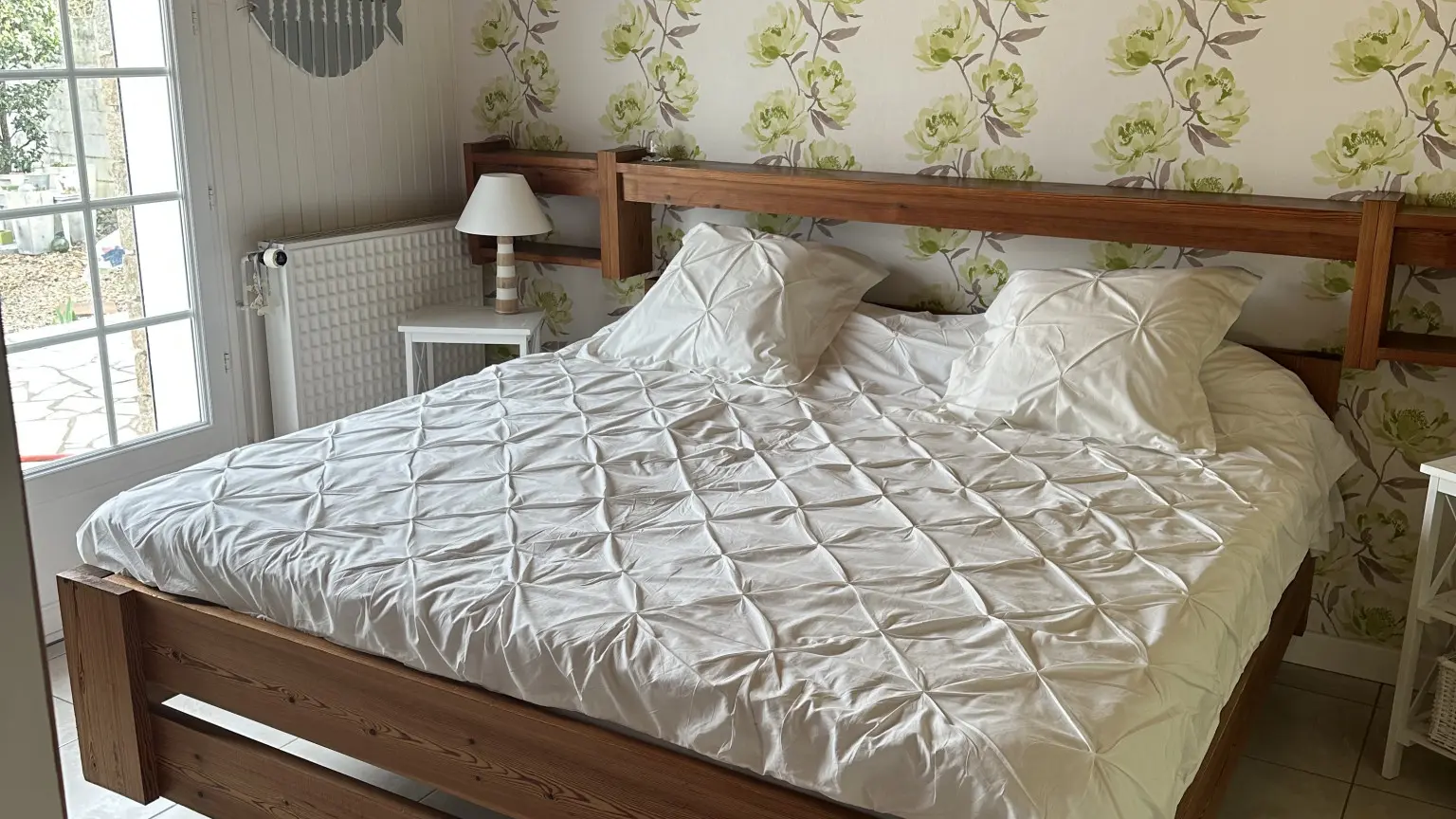 Localisation idéale de votre chambre dans notre maison de famille offrant depuis toujours, un grand couchage peu commun de 2 mètres par 2, située au rez-de-chaussée ouvrant sur l'arrière de la maison. Elle donne directement accès à la terrasse, au jardin, à la piscine, le tout orienté plein sud.