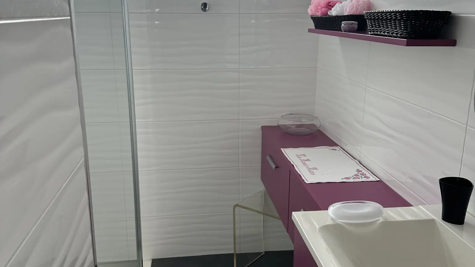Dans le prolongement de votre chambre et du petit salon, votre salle de bain avec à disposition, shampoing et savon bio, puis les toilettes.