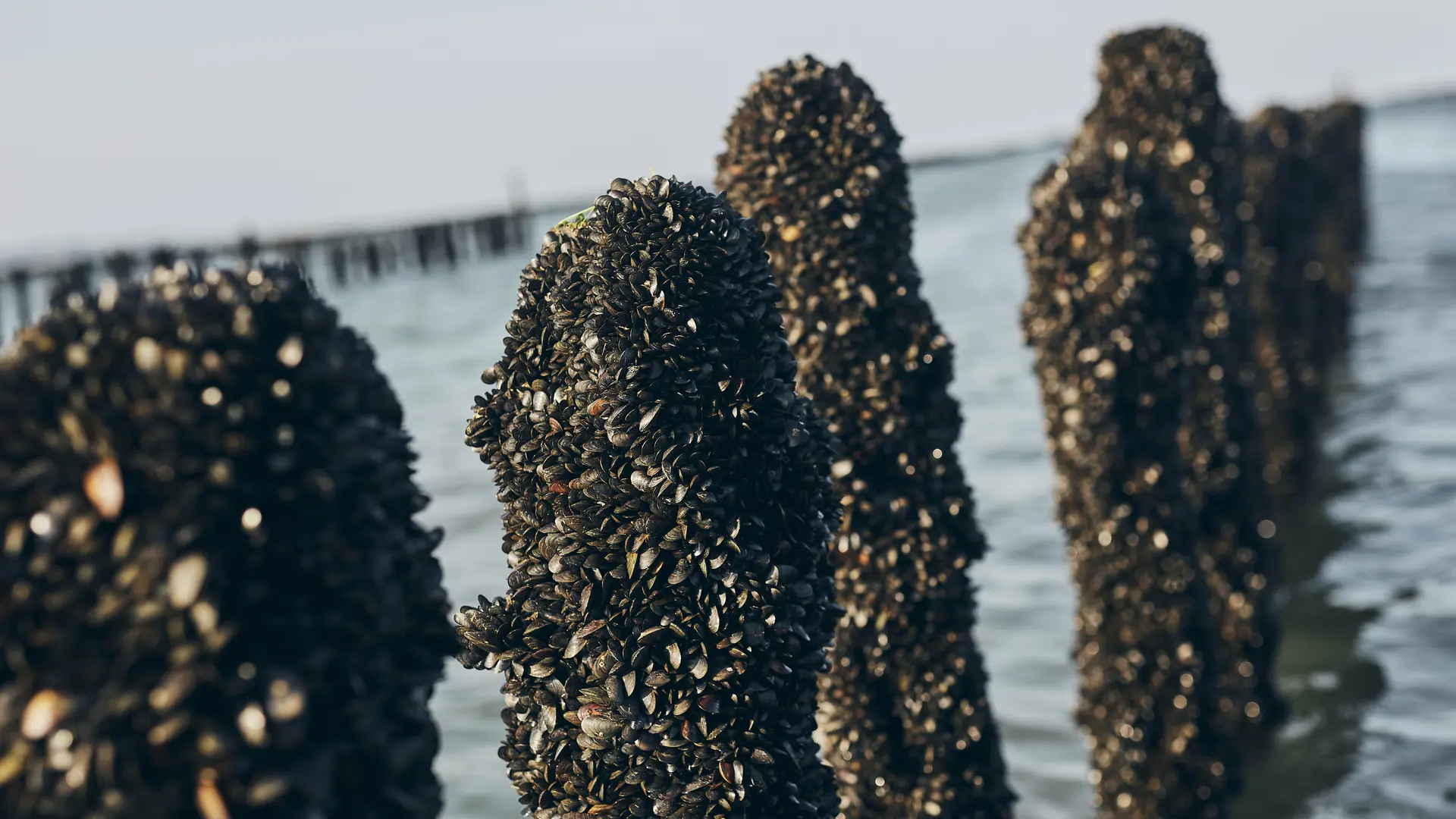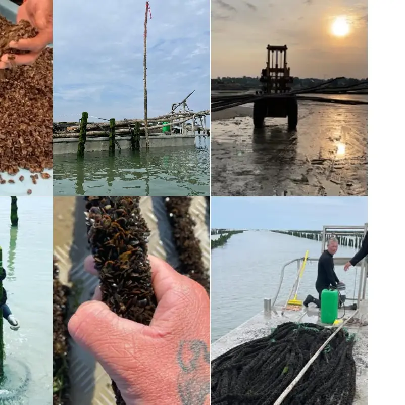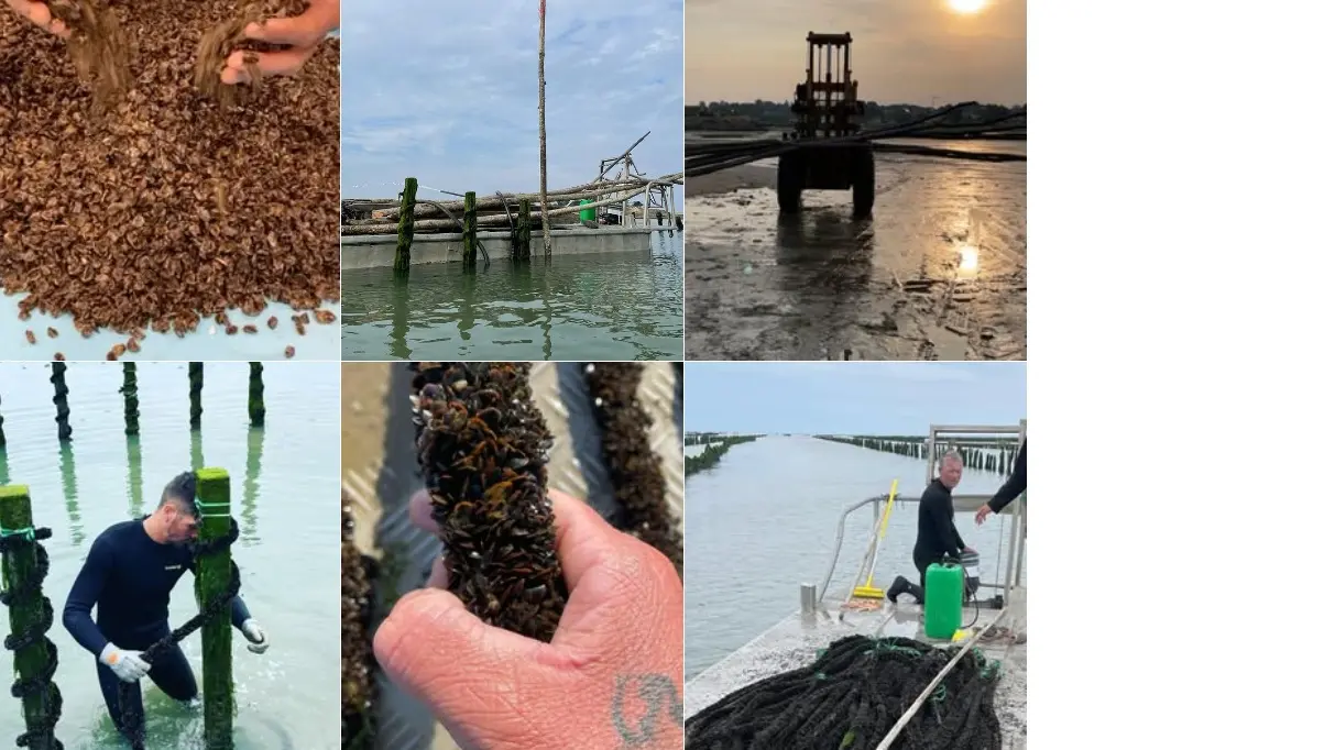Dans les parcs de la ferme, les huîtres et les moules grandissent au rythme des marées et de nombreuses manipulations sont nécessaires...