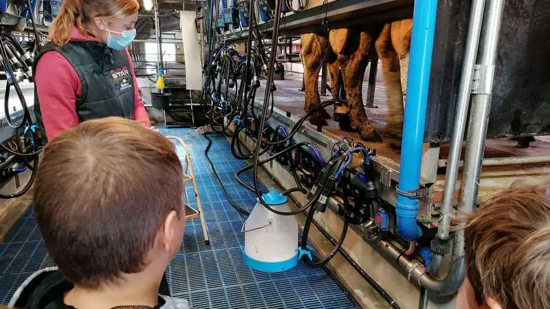 Tiphaine et Mathieu vous accueillent dans leur ferme pédagogique où ils produisent du lait, mais aussi des céréales, de l’herbe et du maïs pour nourrir leurs vaches laitières.