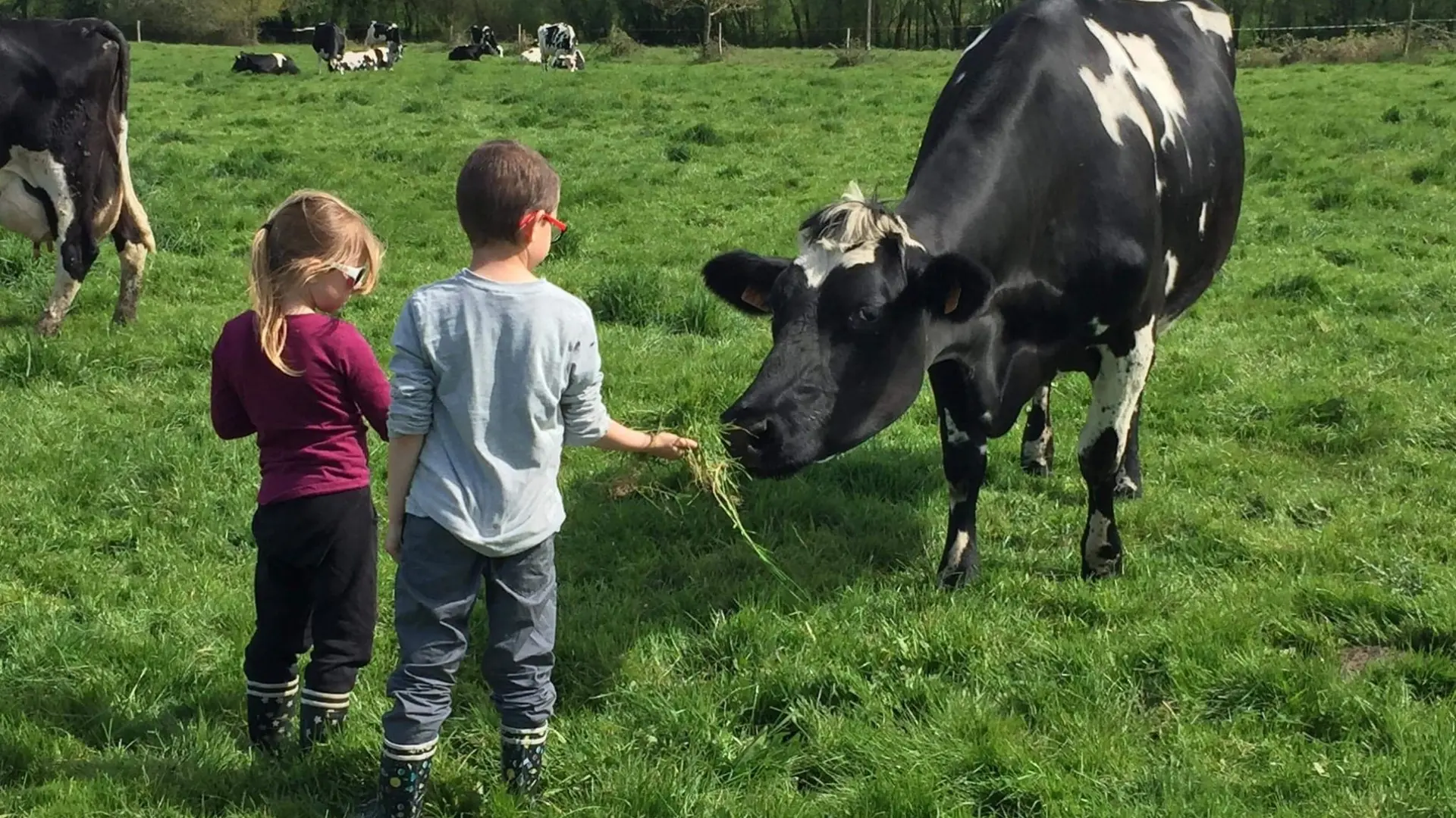 À La petite Arche de la Vallée, vous caressez les animaux, visitez l’exploitation, ramenez les vaches du champ et participez même à la traite !