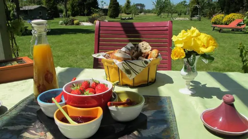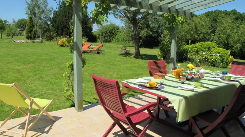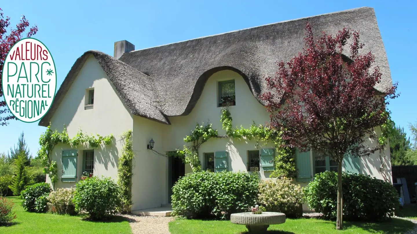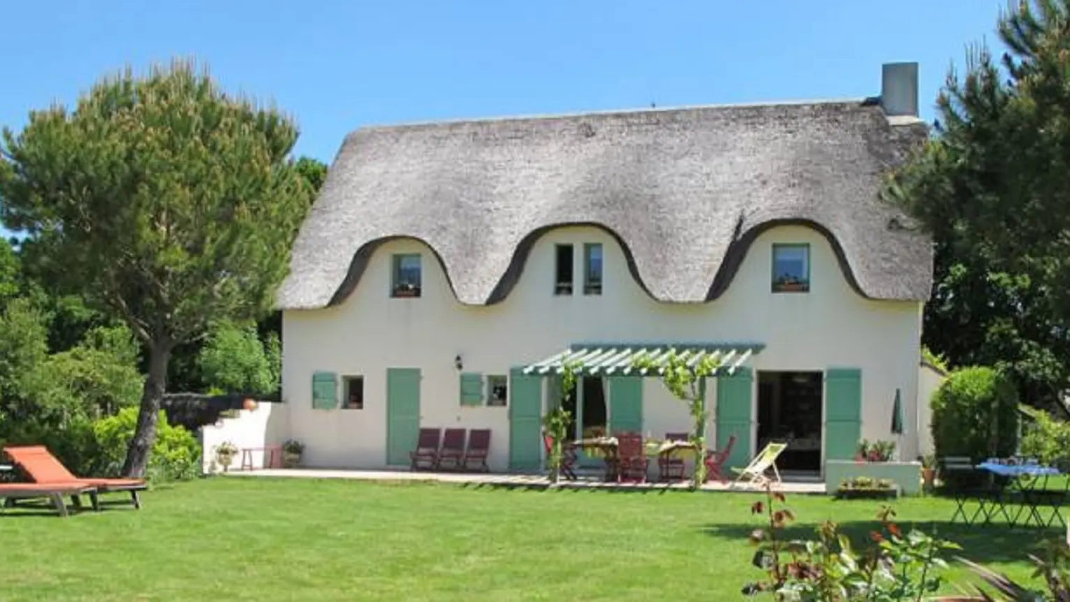 Dans un parc d'1 ha, jolie chaumière située dans un site protégé du Parc Naturel Régional de Brière, à 12 km de la cité médiévale de Guérande. A l'étage, 2 belles chambres spacieuses (dont une avec salon, kitchenette et terrasse privative) à la décoration soignée. Petit déjeuner servi au coin du feu ou sous la pergola. Possibilité de pique-niquer sous le kiosque ou dans la paillotte avec coin cuisine (avril/sept). Découverte du marais de Brière en barque, à cheval, à vélo, à pied au départ de la maison. Sur rdv visite de la saline des propriétaires. (producteur/récoltant de sel de Guérande).