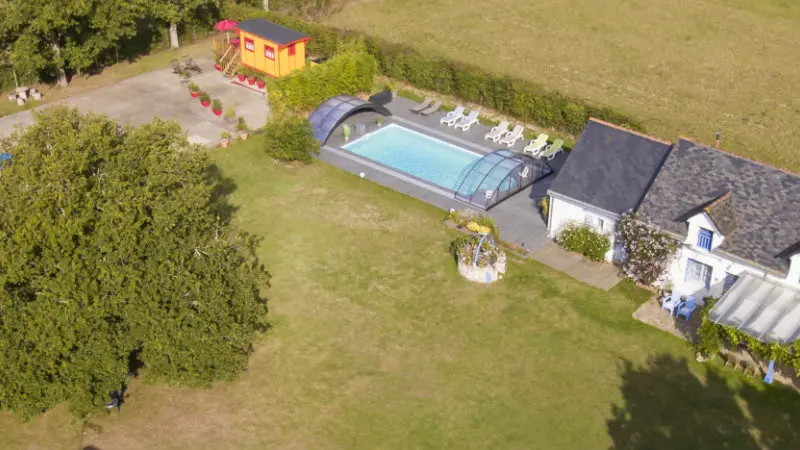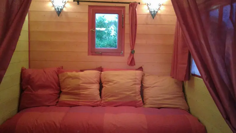Le Champ d’or en bordure de Brière vous propose des hébergements variés. Chambres d’Hôtes en Longère ou en Roulotte ainsi que le gîte "La Chaumière", le tout est situé dans un grand jardin, au calme sans voisins, avec piscine couverte, spa, jeux de jardin, parkings privatifs et accueil spécifique cavaliers et chevaux. Animaux acceptés (chiens, chats…) Pour les randonneurs : possibilité de paniers pique-nique. Hébergement insolite : La Roulotte du Champ d’or La Roulotte cachée derrière une haie de bambous votre propose un coin cuisine, un coin table, un grand lit de 160 et une terrasse extérieure. Capacité 2 personnes. Toilette sèche extérieure. Option nature : douche et lavabo extérieurs à disposition, option confort : + 5€ douche et lavabo intérieur. Plus d’information sur le site, étudie toute demande.