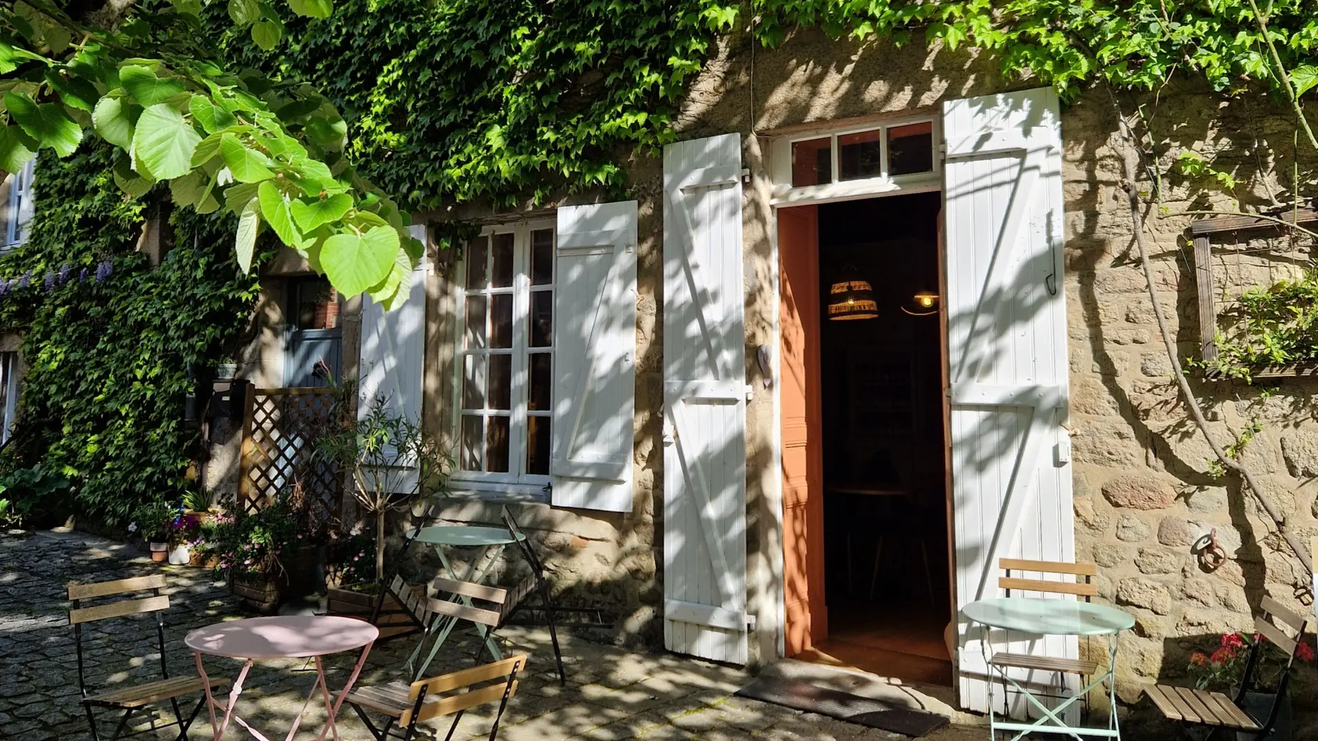 Venez prendre votre petit-déjeuner, déjeuner ou goûter à l’ombre du tilleul ou près de la cheminée.