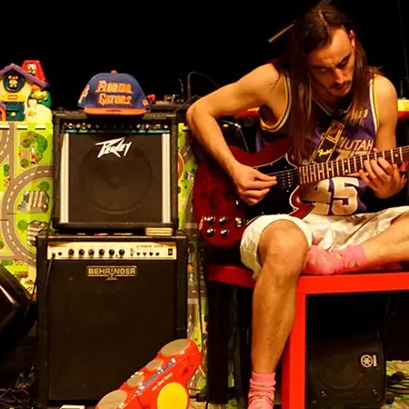 JouJou c’est un tas d’amplis entremêlés de jeux en plastique avec des sons douteux, de tables et de synthés simplistes.