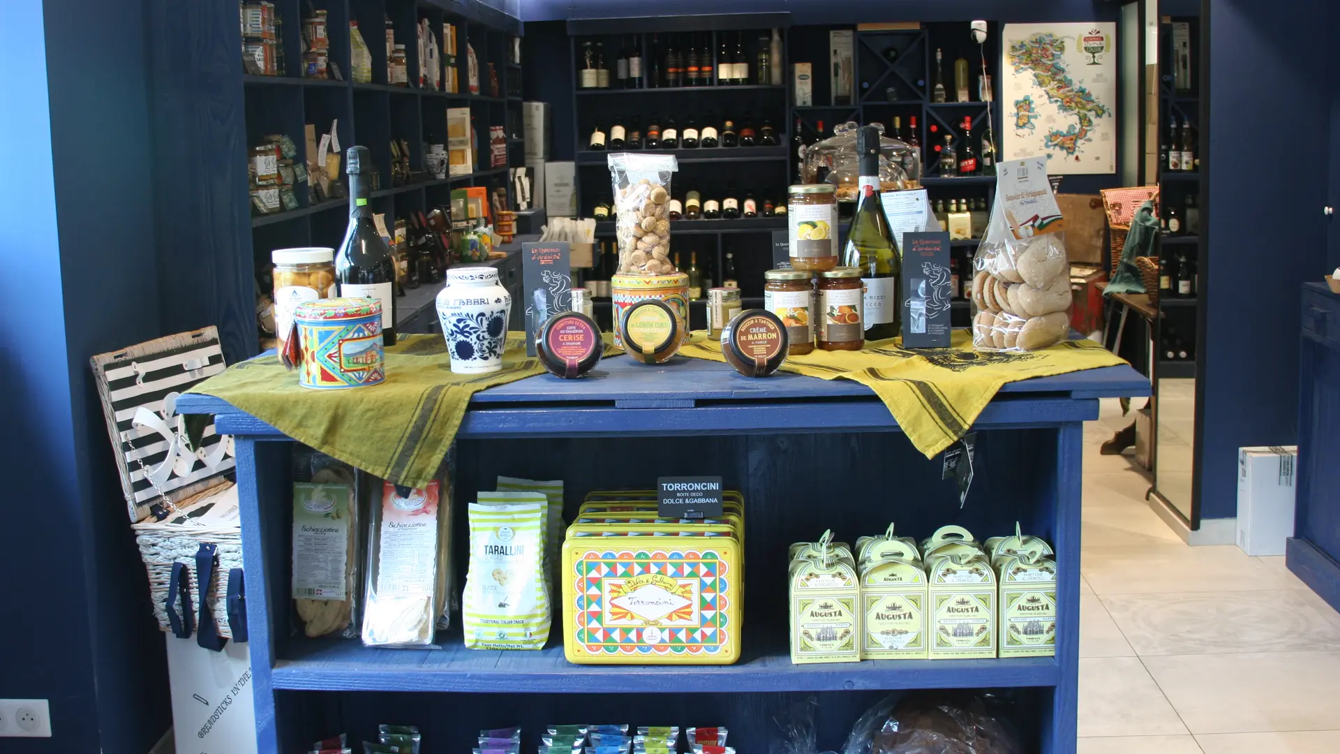 L’épicurien, épicerie fine italienne, vous propose des tapenades et des anti pastis pour vos entrées, des pâtes, des sauces tomate, de l’huile d’olive, des fromages et une gamme de vins.
