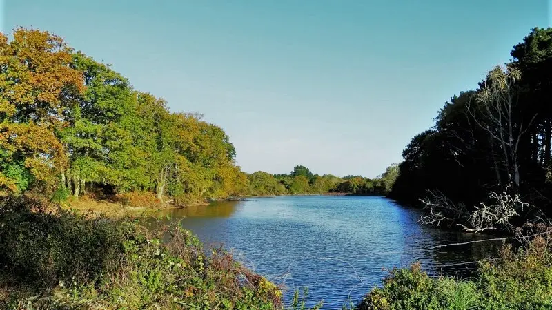 2- Traversez la RD et allez en face route du Pont Hervé. Prenez la 1re à droite, encore à droite puis 2 fois à gauche, vous passez devant une chaumière. Au croisement, prenez en face et continuez tout droit. À l’intersection, dirigez-vous à droite et longez la route sur 550 m jusqu’au carrefour, tournez à gauche. Continuez puis prenez la 1re à droite.