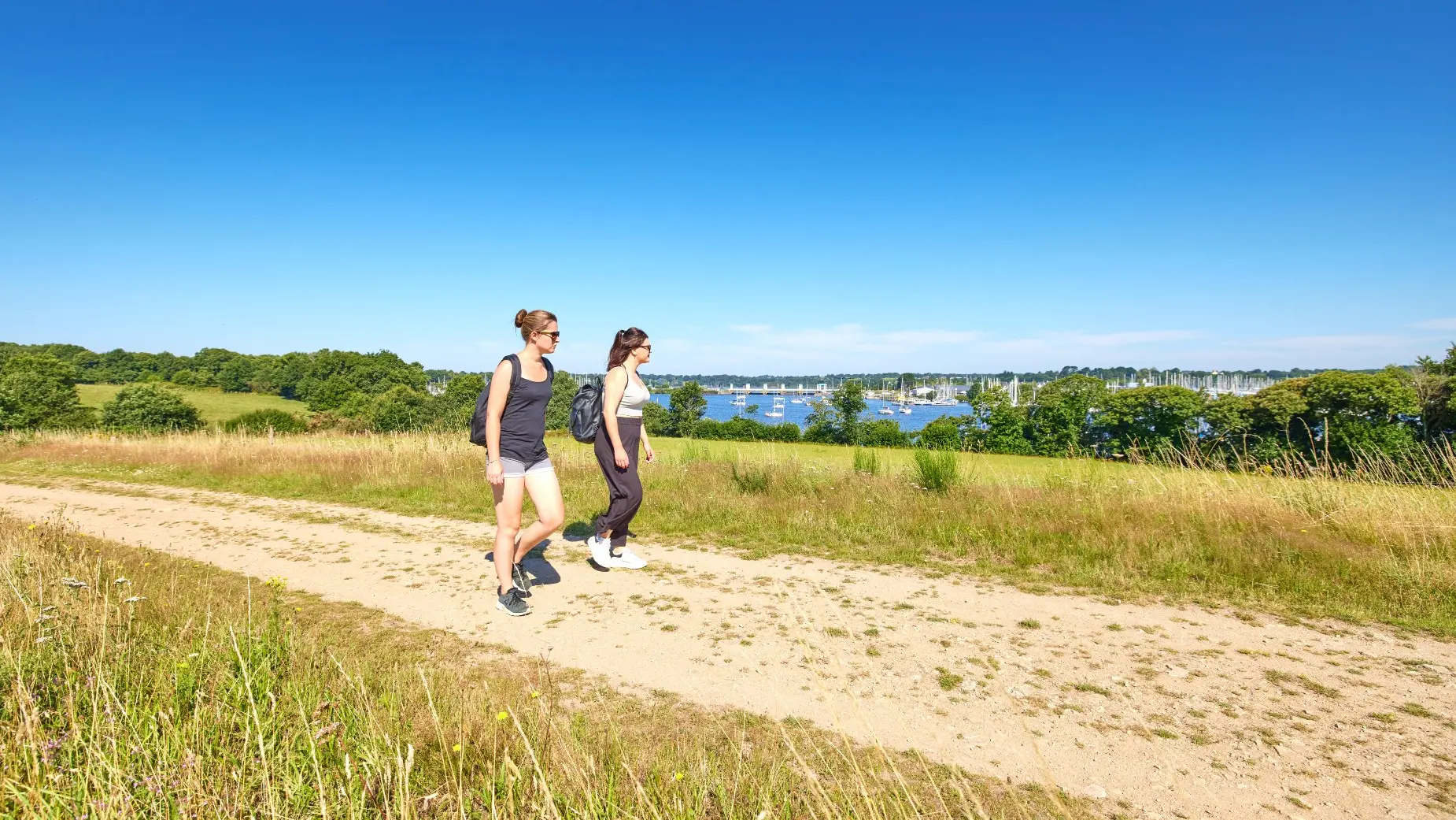 3- Longez ensuite le port de plaisance jusqu’au franchissement d’une passerelle. Au sommet de la côte, tournez à gauche et continuez sur ce chemin.