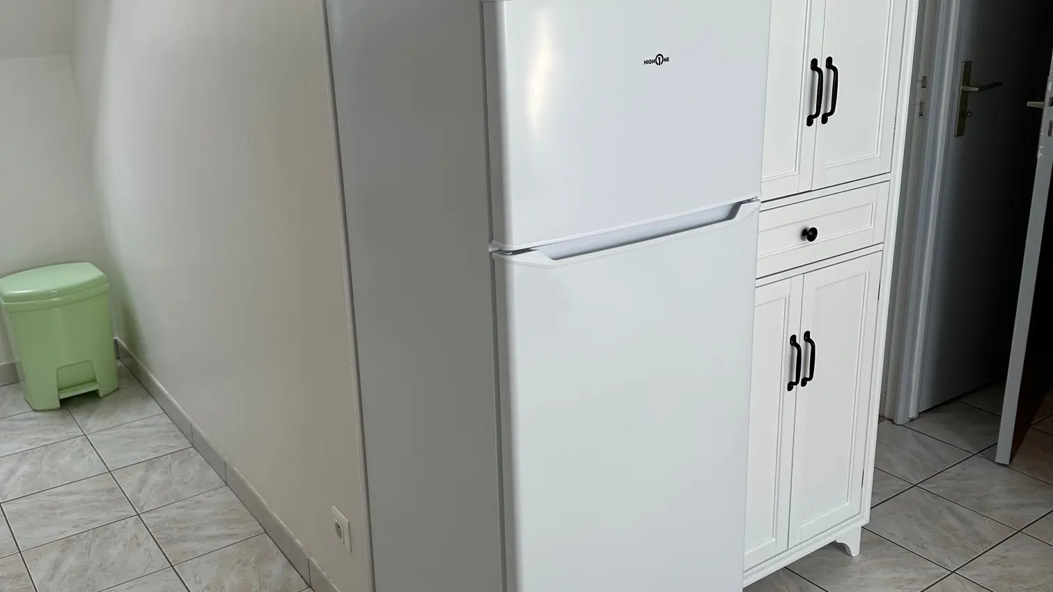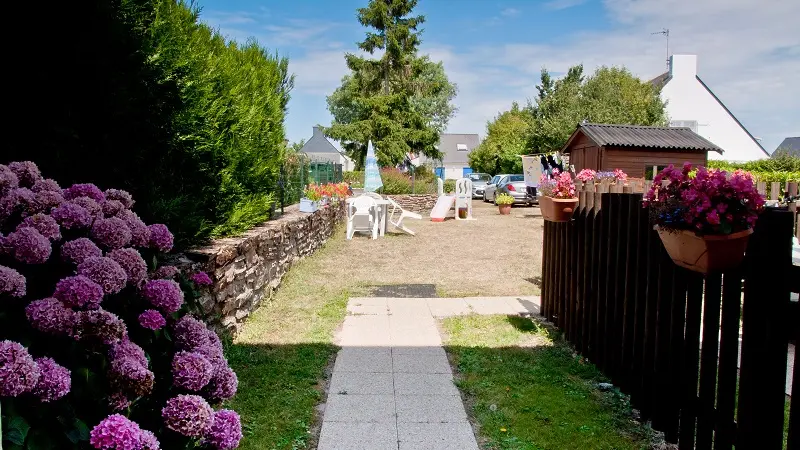 Appartement pour 3 personnes au 2ème étage avec kitchenette, salon, une chambre et jardin commun.