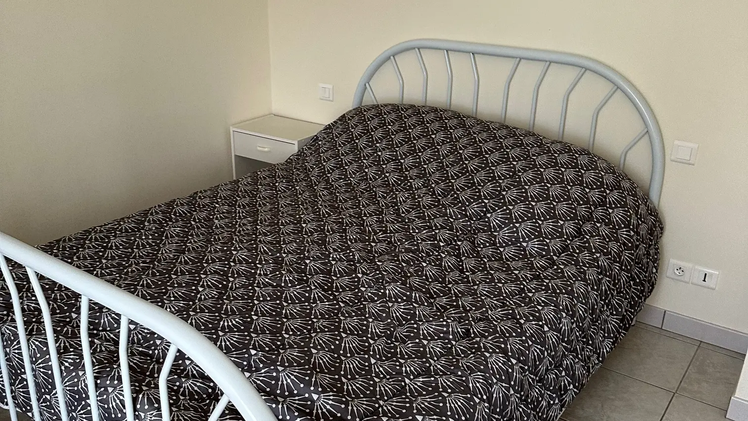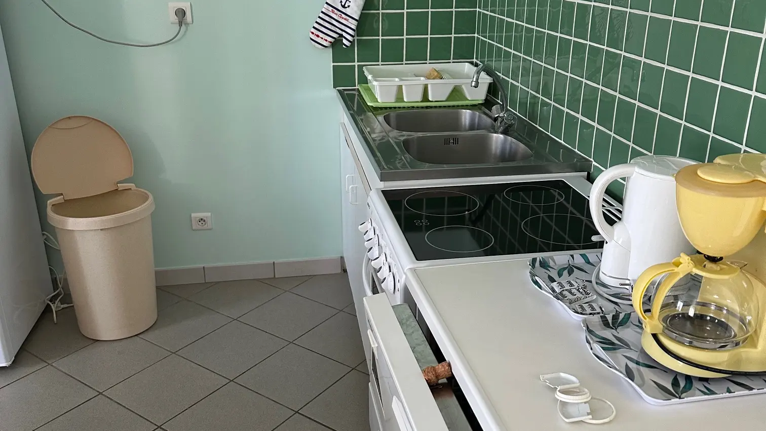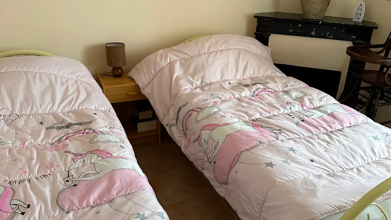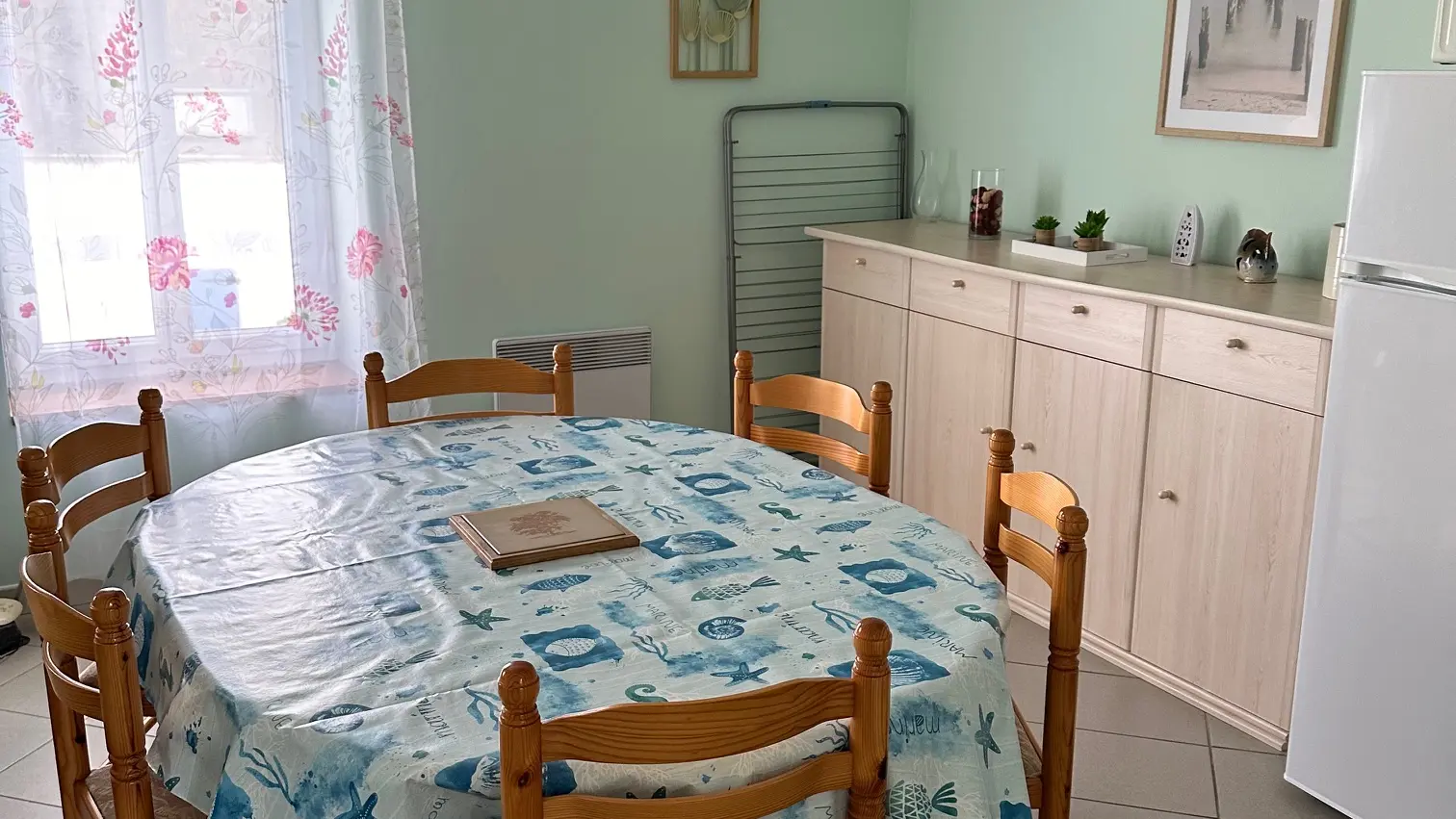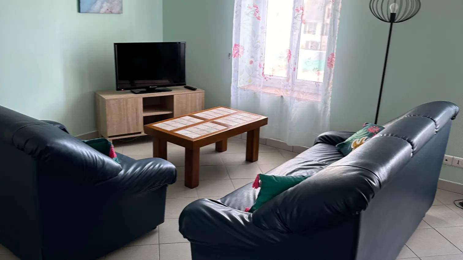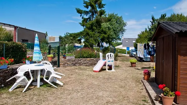 Appartement pour 4 personnes au 1er étage avec cuisine, salon, toilettes séparées, deux chambres et jardin commun.