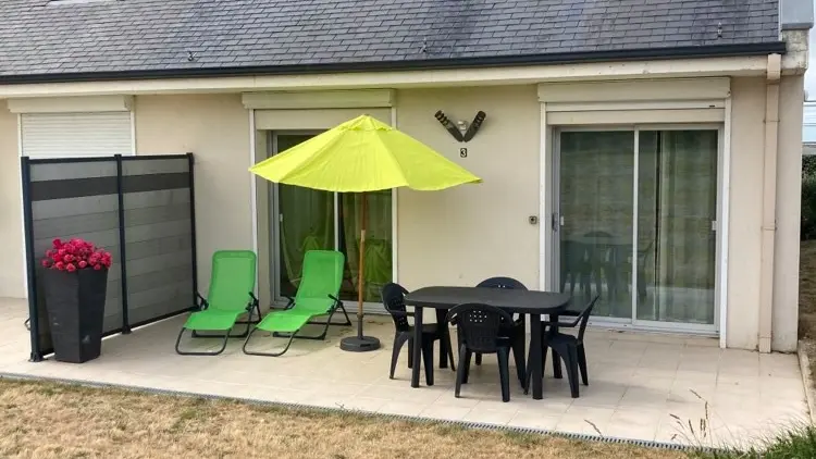 EN PLEINE CÔTE SAUVAGE, 4 appartements T2 récents, 4 personnes. Classés 3 * - dont un répond aux normes PMR (Personnes à Mobilité Réduite), dont 2 face à la mer et à la plage, mais protégés par une haie et 2 donnant coté jardin, sur un espace vert boisé, situés entre La Baule et le Croisic : LE POULIGUEN.