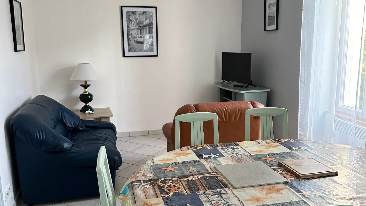 Appartement pour 4 personnes au rez-de-chaussée avec cuisine, salon, deux chambres et jardin privatif.