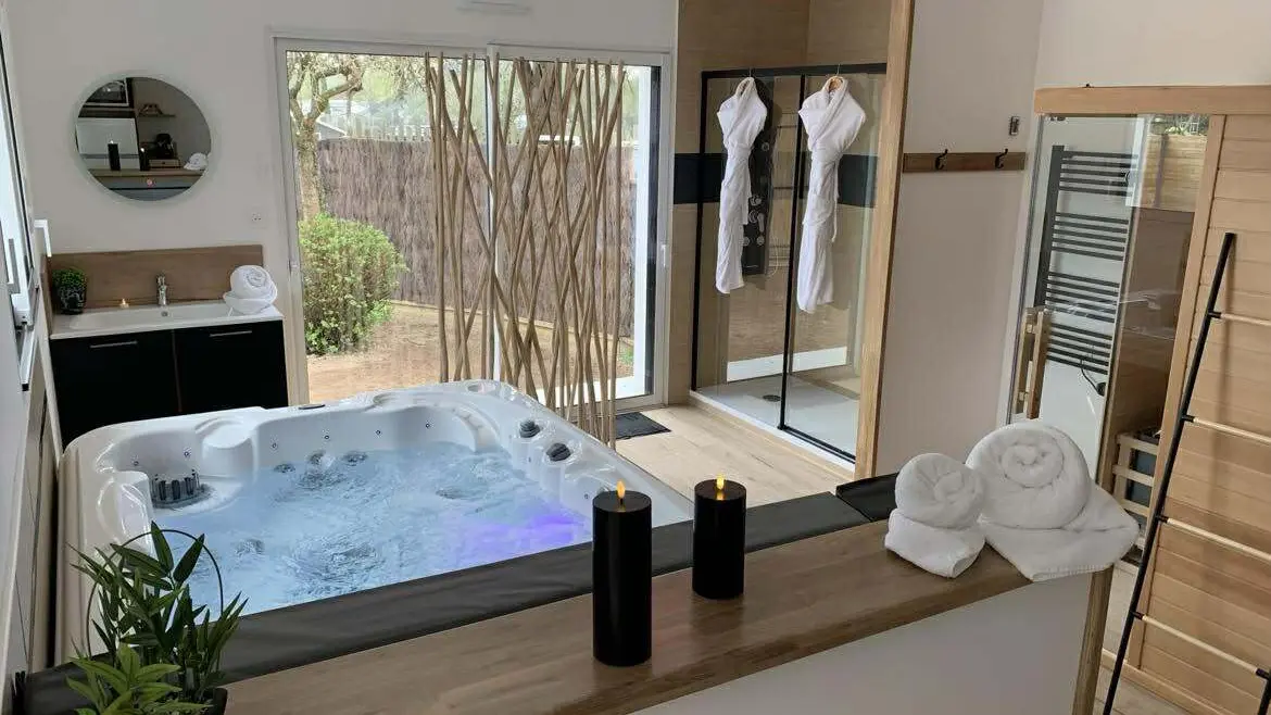 Bienvenue dans ce lieu privilégié, conçu pour deux personnes majeures souhaitant profiter d'un séjour unique à Guérande. Notre gite vous offre un accès illimité au spa deux places chauffé à 37°C, au sauna et à la douche sensorielle duo.