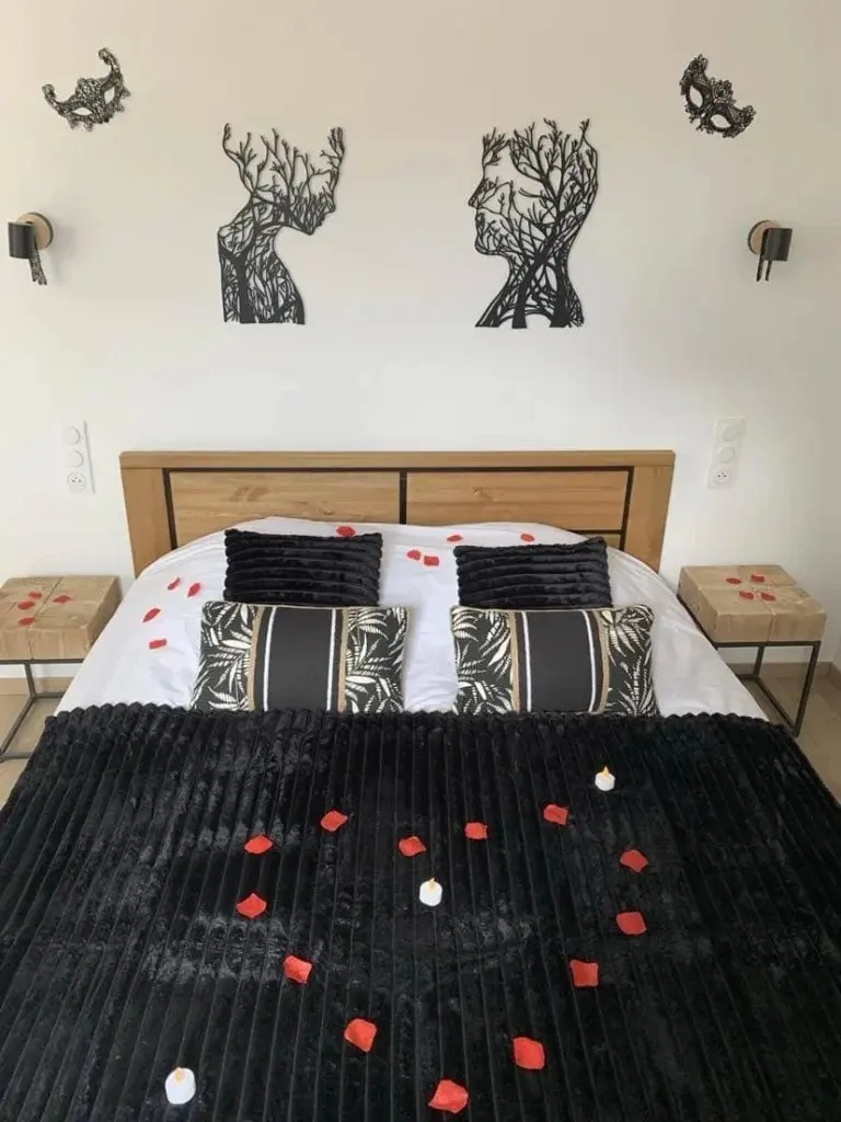 Oubliez le quotidien et profitez de ce condensé de plaisir à partager en couple, avec un accès direct à sa grande terrasse privative. La décoration dans les tons noirs et bois apportent un côté secret et mystérieux.