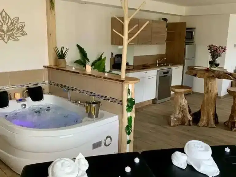 Des jeux de lumières sont présents dans l'ensemble du gîte, avec enceintes Bluetooth connectées pour mettre de la musique.