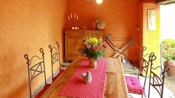 Le patio aux couleurs provençales, et accolé à la cuisine vous permettra de prendre vos repas en extérieur et à l'abri. Il bénéficie d'une vue à 180° sur le jardin.
