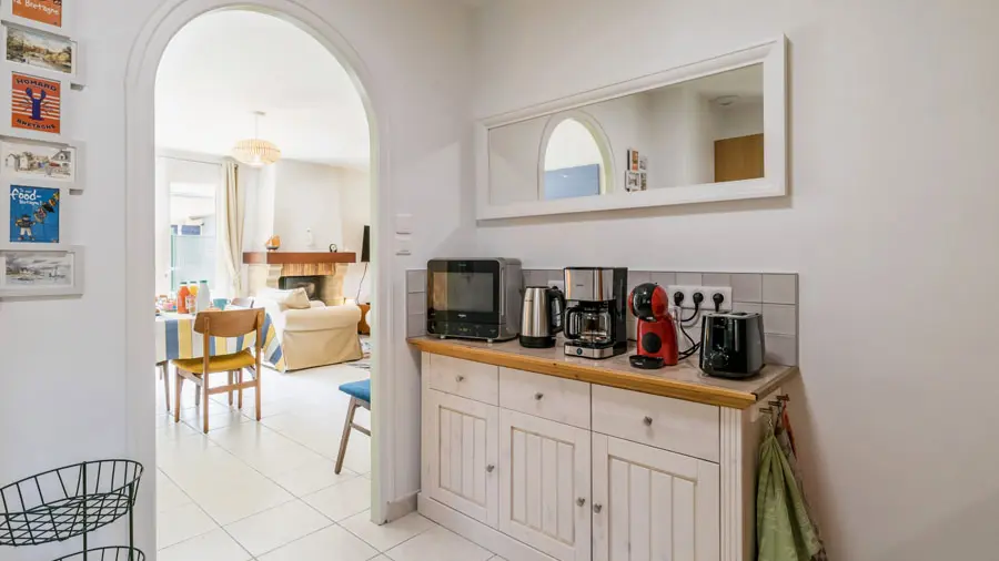 Equipements supplémentaires : équipements bébé sur demande (lit parapluie bébé/chaise haute/rehausseur/baignoire/barrière de sécurité enfant), Ethernet/Wifi très haut débit (fibre), plancha électrique, enceinte Bluetooth et machine à boissons Dolce Gusto.