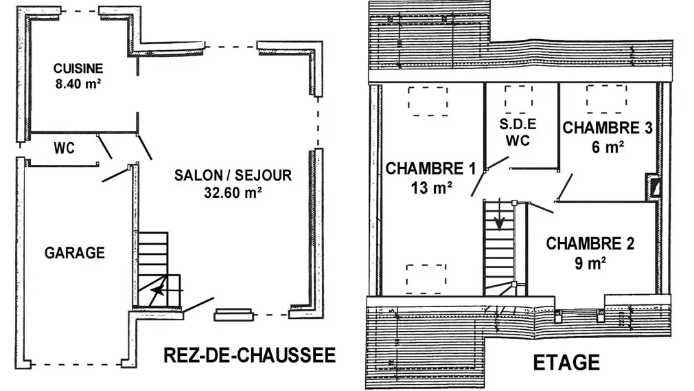 Au rdc : séjour/salon de 32 m², cuisine séparée de 8 m², WC indépendant, parking privatif et garage fermé (pour vélos).