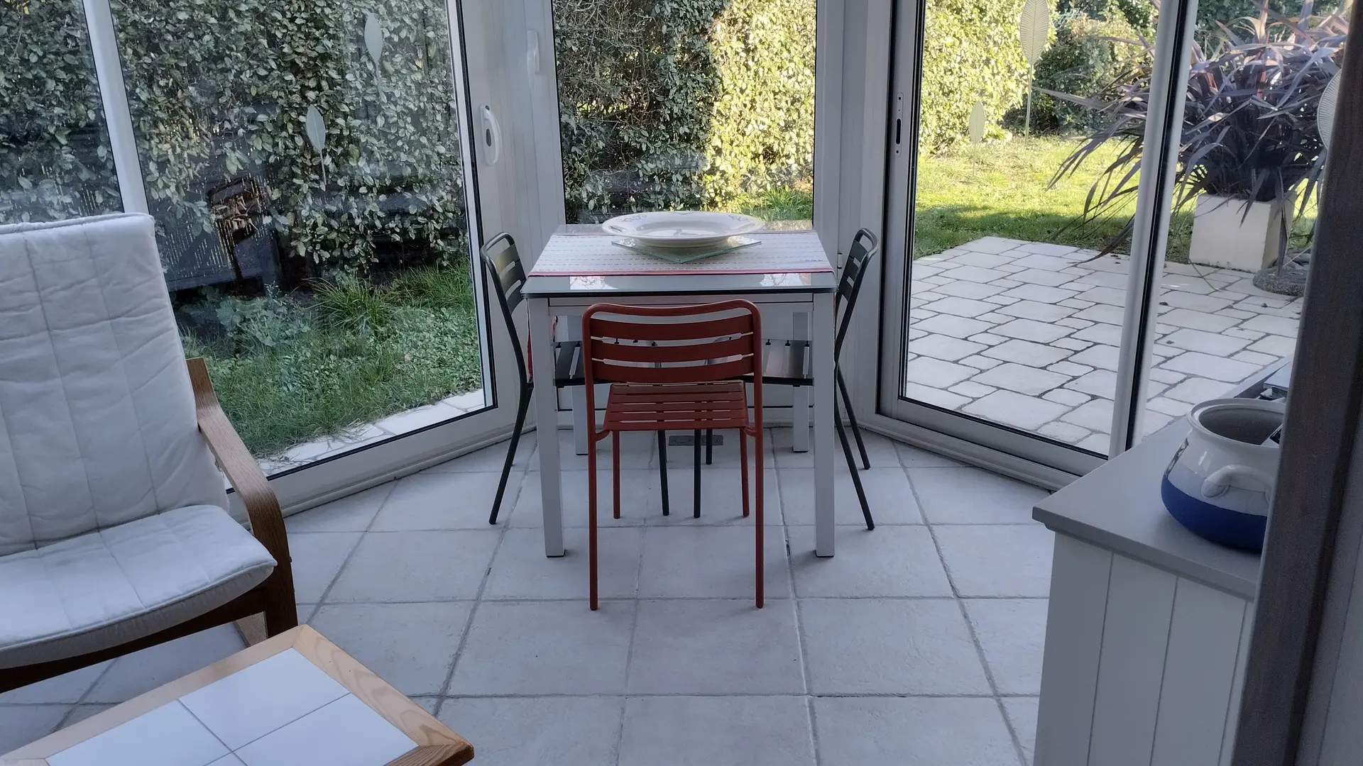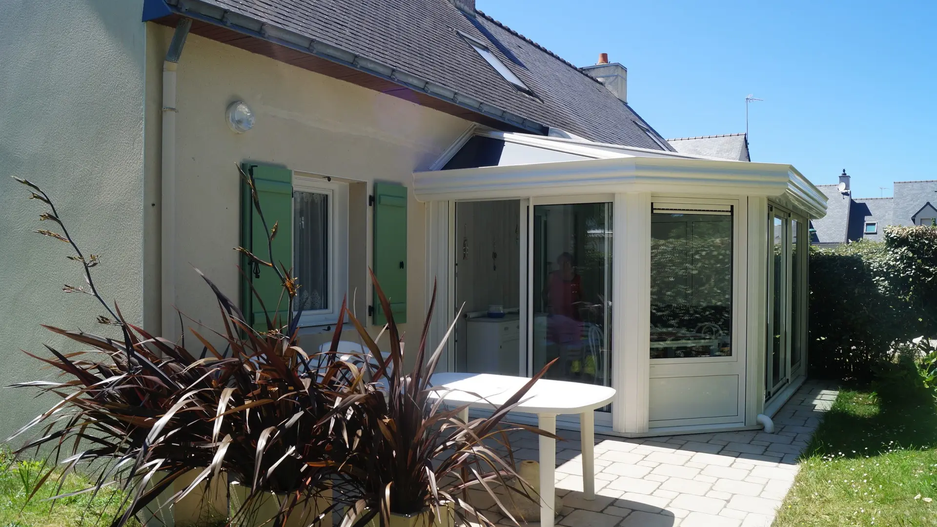 Maison dans une résidence privée au calme. Véranda agréable et jardin clos avec terrasse.Mer et commerces à proximité.