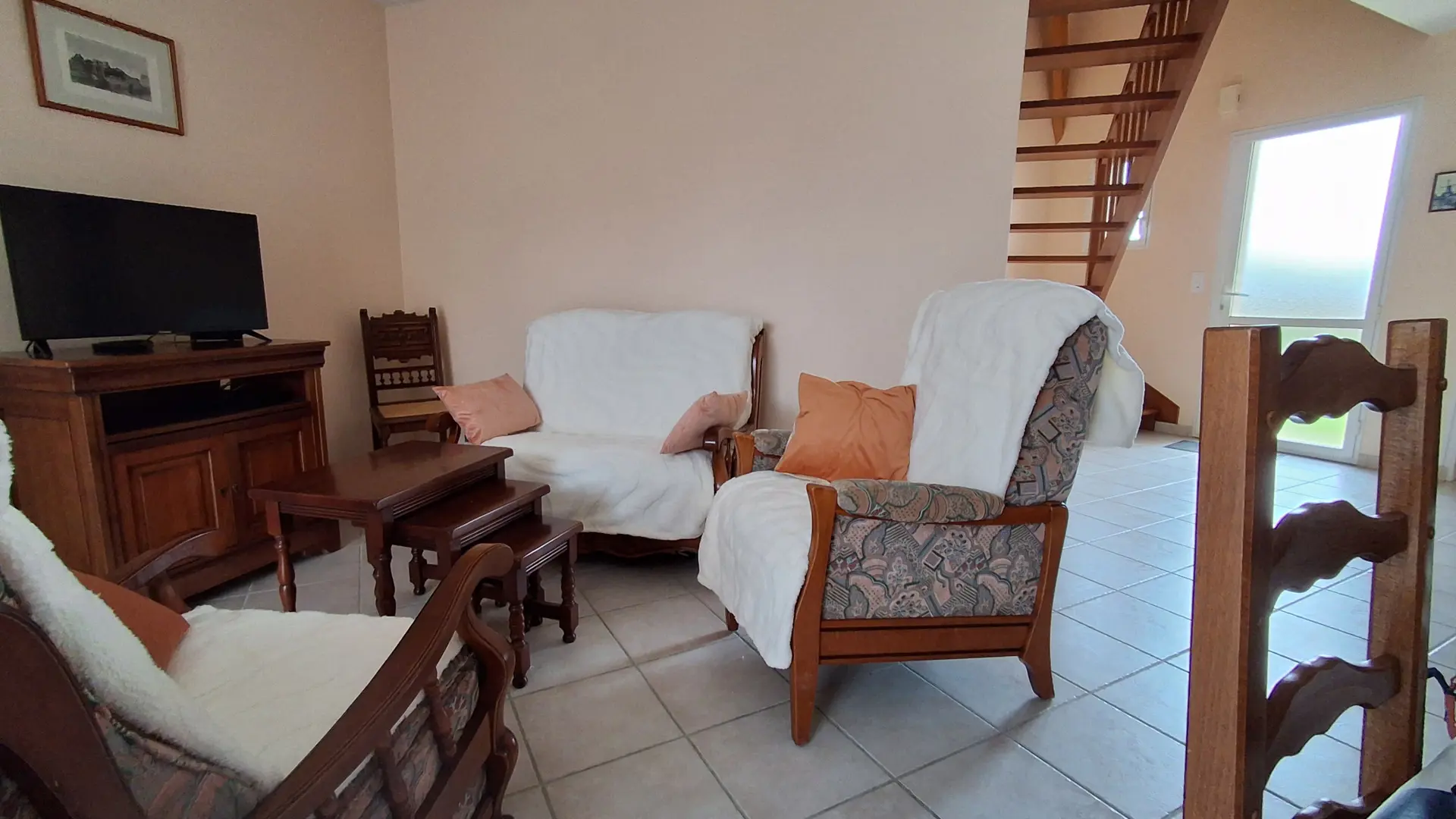 Maison mitoyenne dans un domaine privé très calme.Située entre Piriac sur mer et Quimiac, non loin de la Plage de Lanséria et des commerces de Quimiac.Ce gite se compose de 3 chambres et 2 salles d'eau.